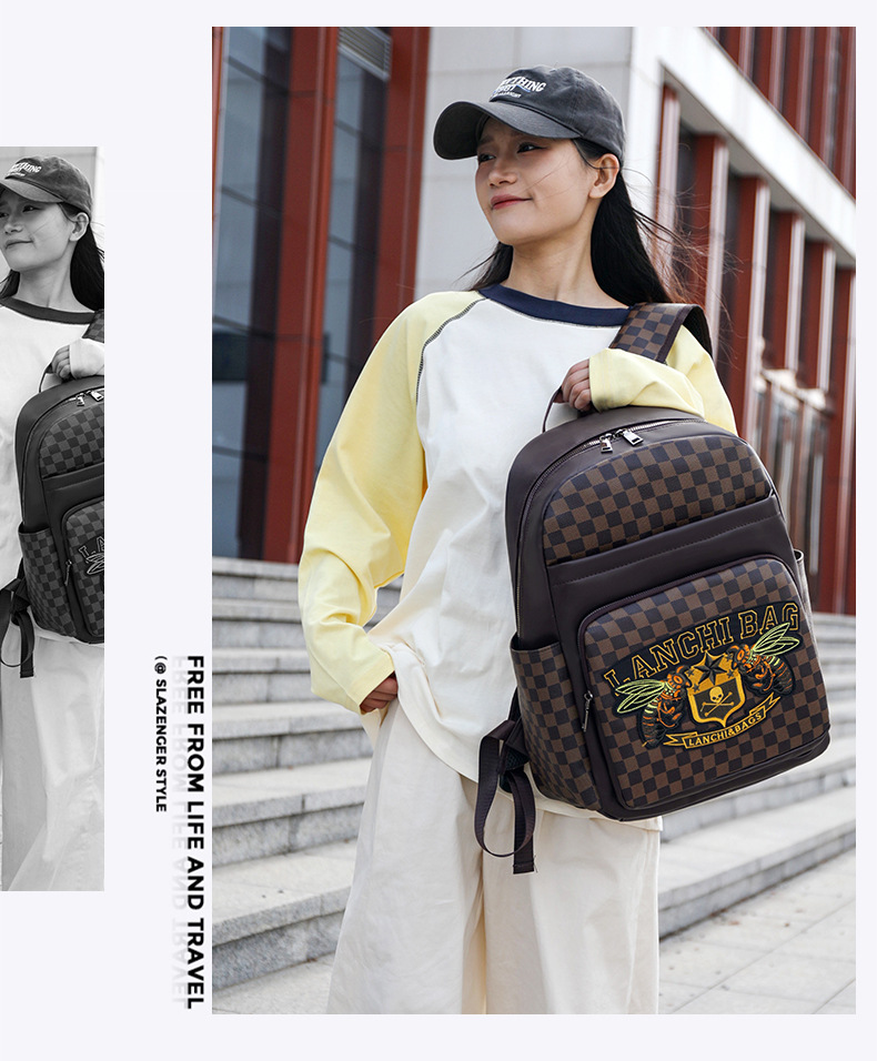 남성과 여성을 위한 새로운 대용량 트렌디한 체크 무늬 캐주얼 여행 가방, 매우 멋진 쇼핑 컴퓨터 가방, 다용도 학생 배낭