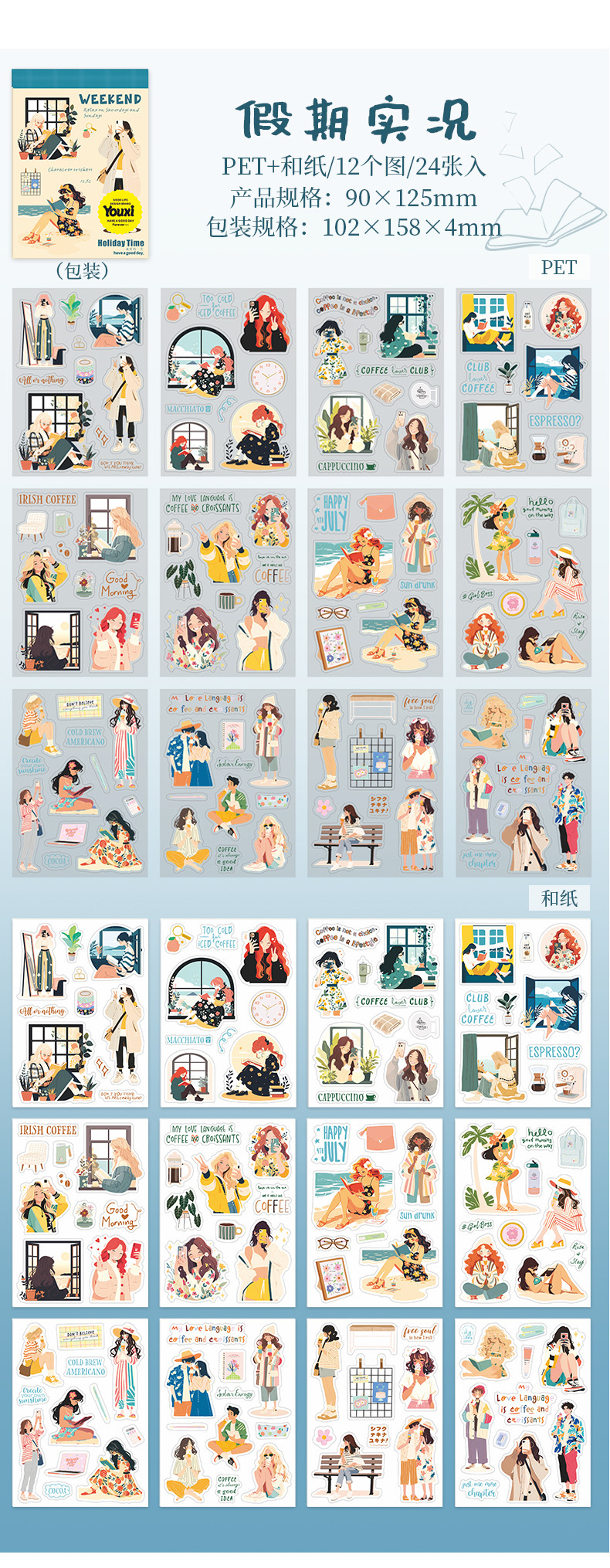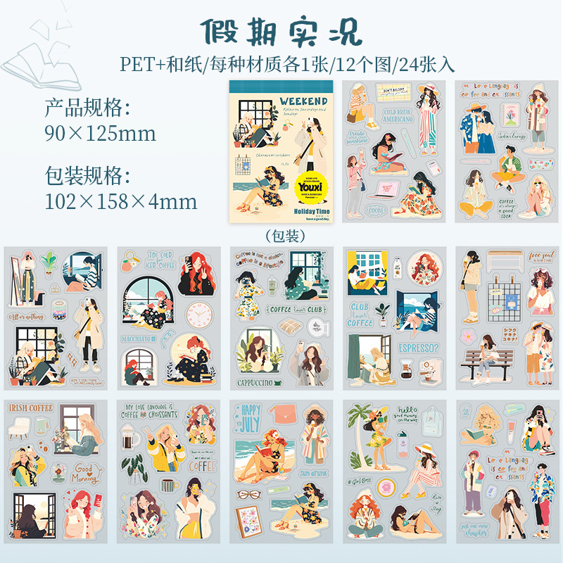 아름다운 날 더블 소재 스티커 이 휴일 시간 시리즈 만화 캐릭터 소재 손 계정 DIY 조경 스티커스토어 가기