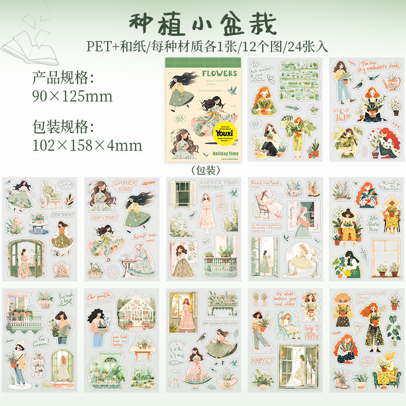 아름다운 날 더블 소재 스티커 이 휴일 시간 시리즈 만화 캐릭터 소재 손 계정 DIY 조경 스티커