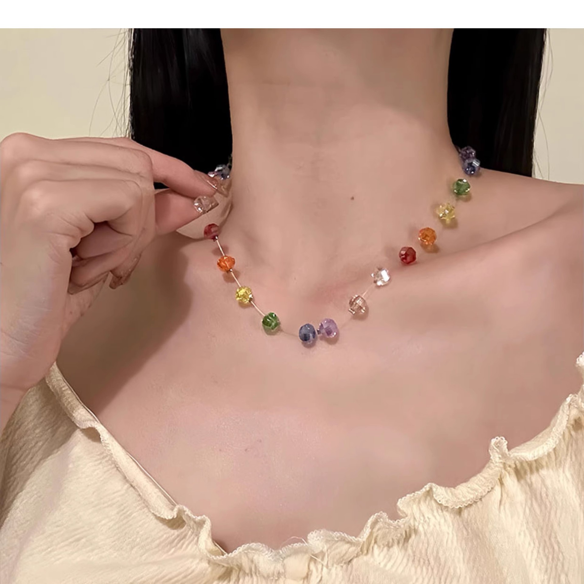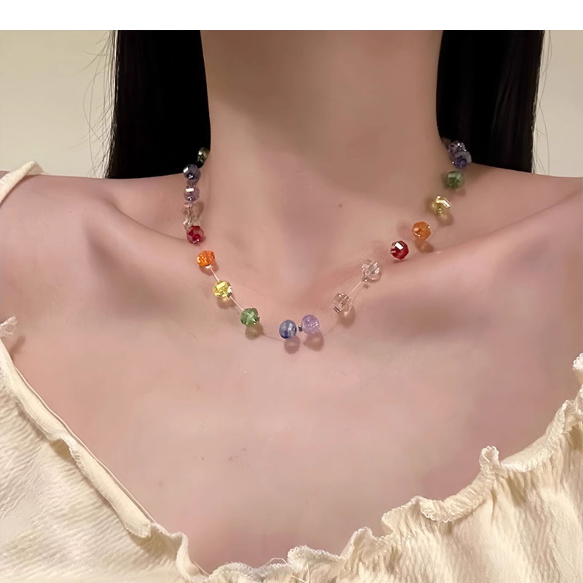 원래 2025 봄과 여름 새로운 도파민 컬러 지르콘 구슬 목걸이 쇄골 체인 쥬얼리