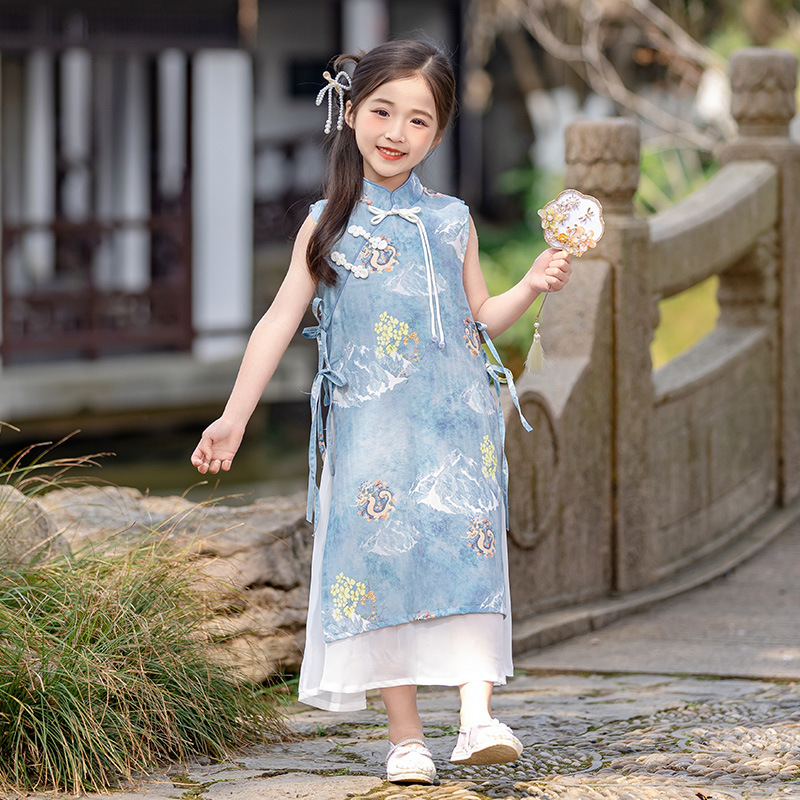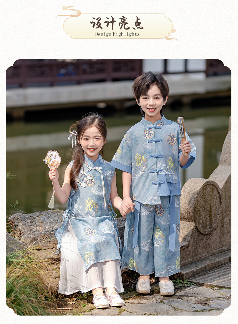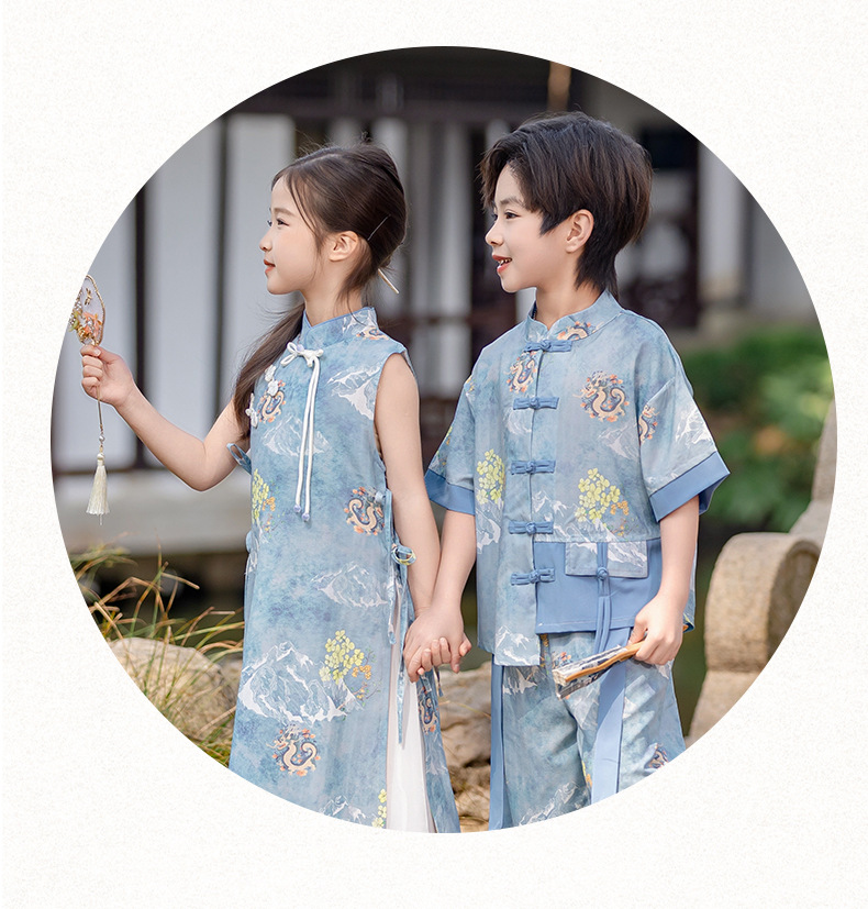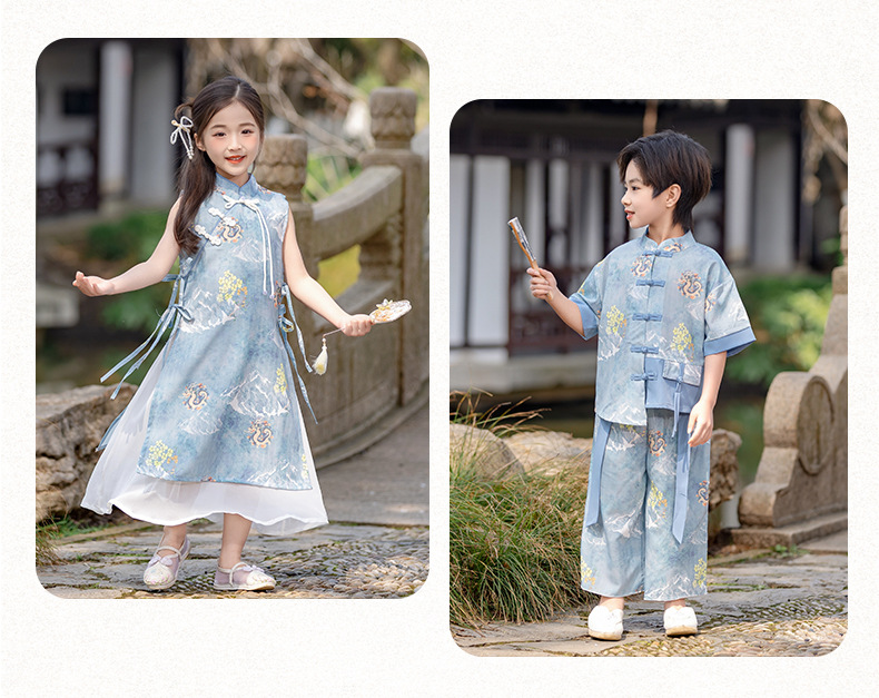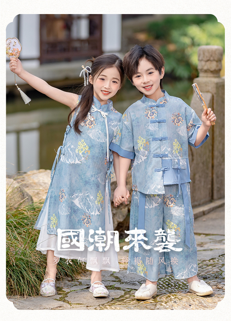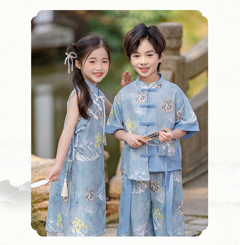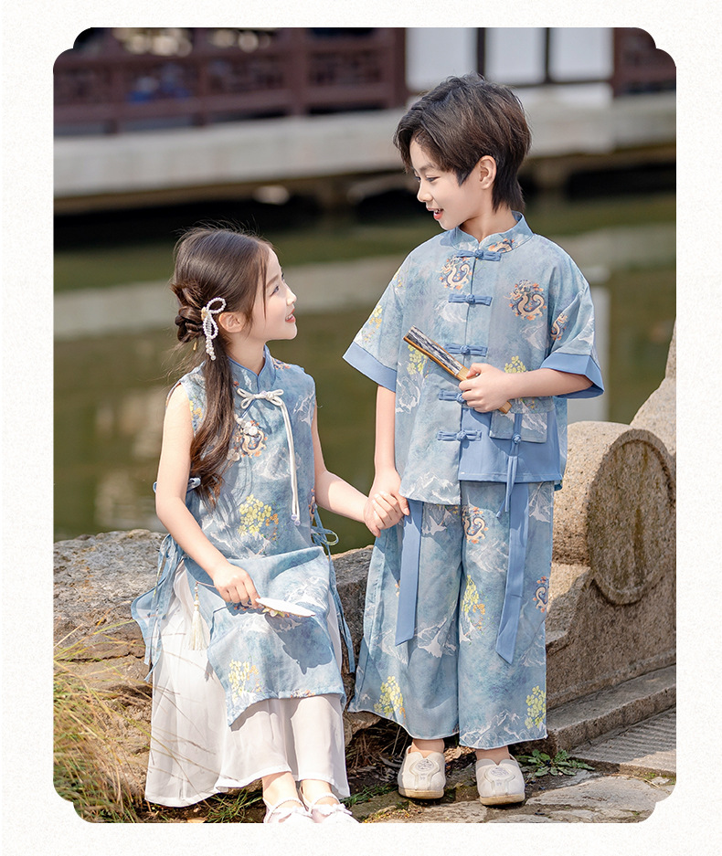 소년 소녀를위한 소녀 청삼 스커트 어린이 새로운 중국 한후 여름 중국 스타일 탕 세트 고대 세트 고대 스타일 공연 패션스토어 가기