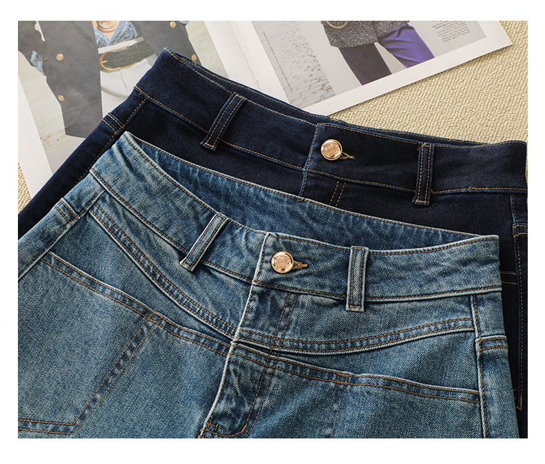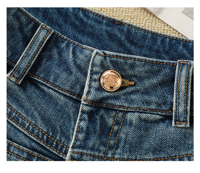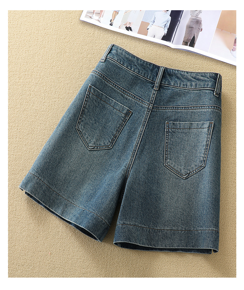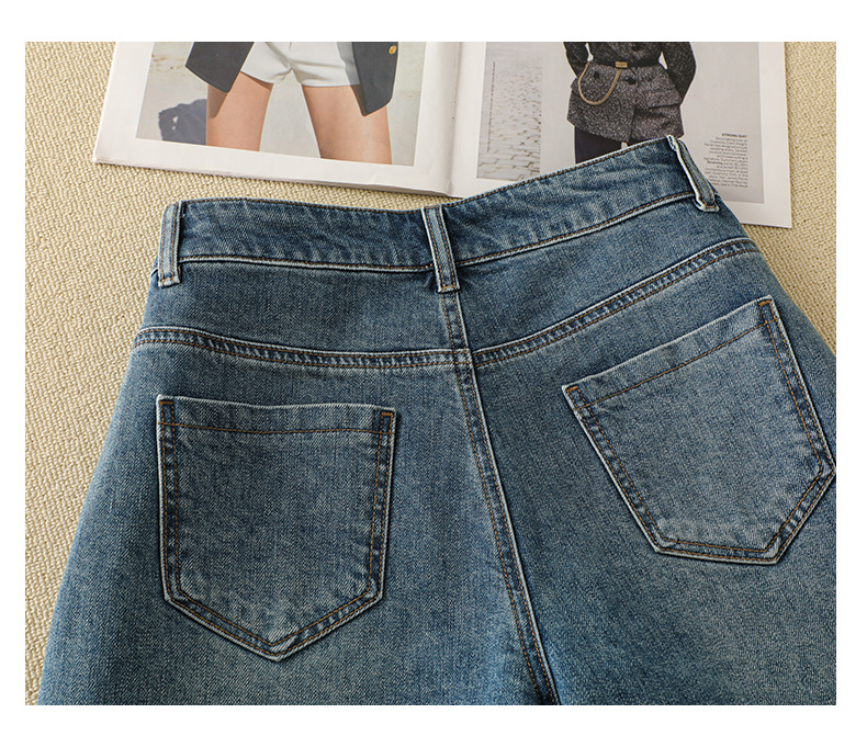 2025 새로운 여름 레트로 높은 허리 데님 반바지 여성 캐릭터 느슨한 직선 바지 작은 얇은 5 점 바지스토어 가기