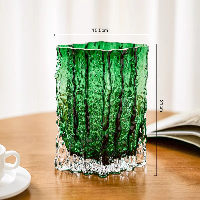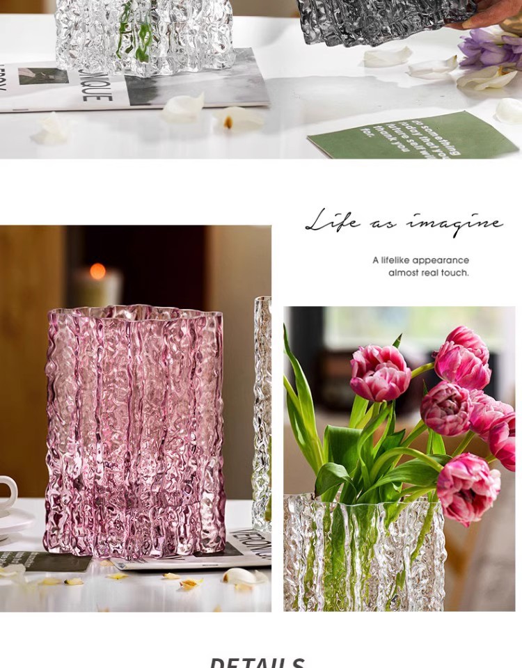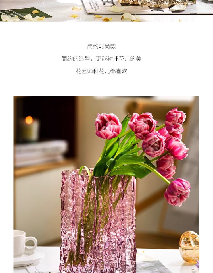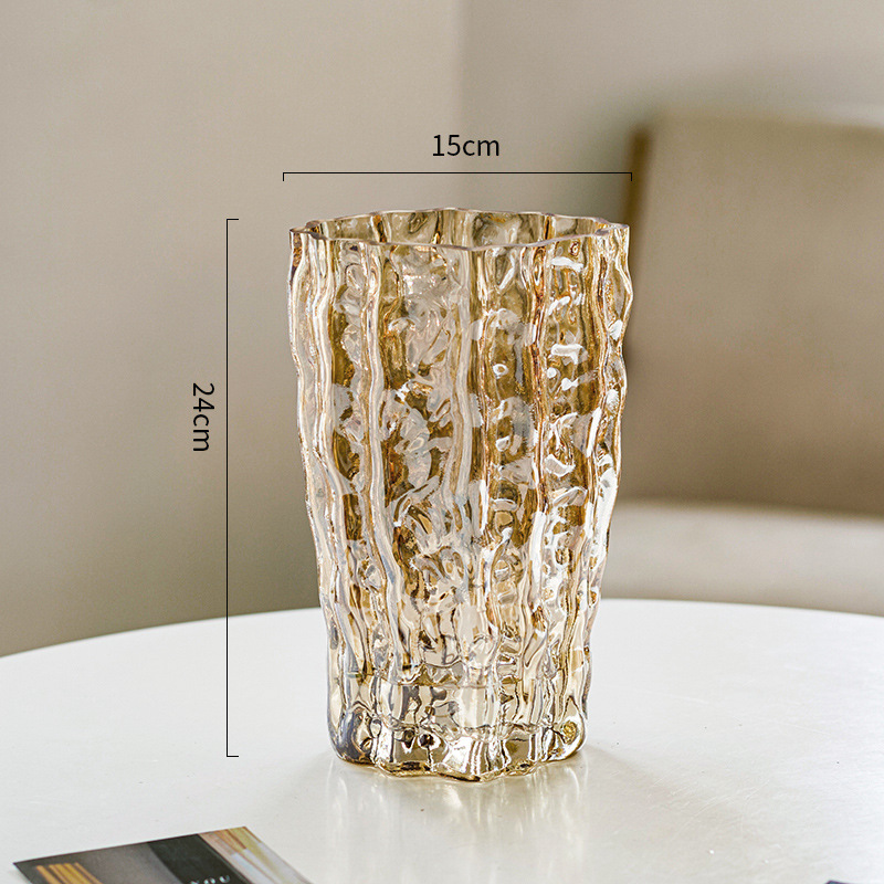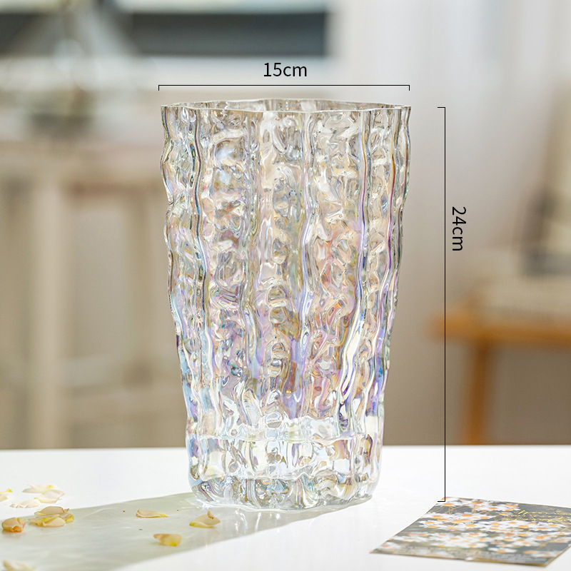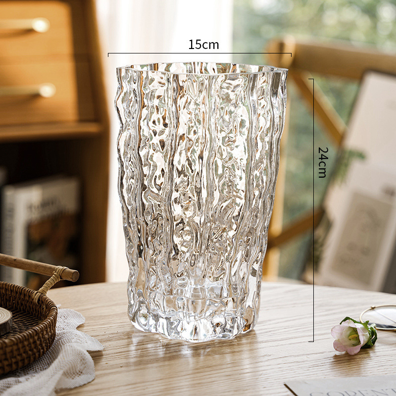 꽃병 장식품 거실 꽃 배열 유리 투명 빙하 빛 고급 고급 고급 감성 수조 Ins 큰 직경 사이버 유명인 꽃