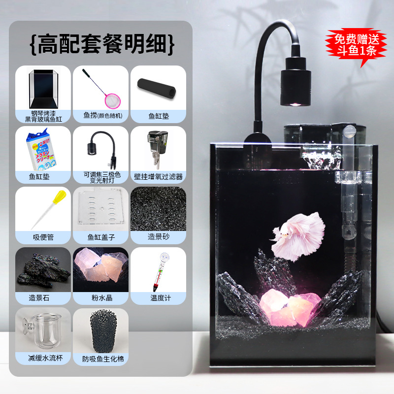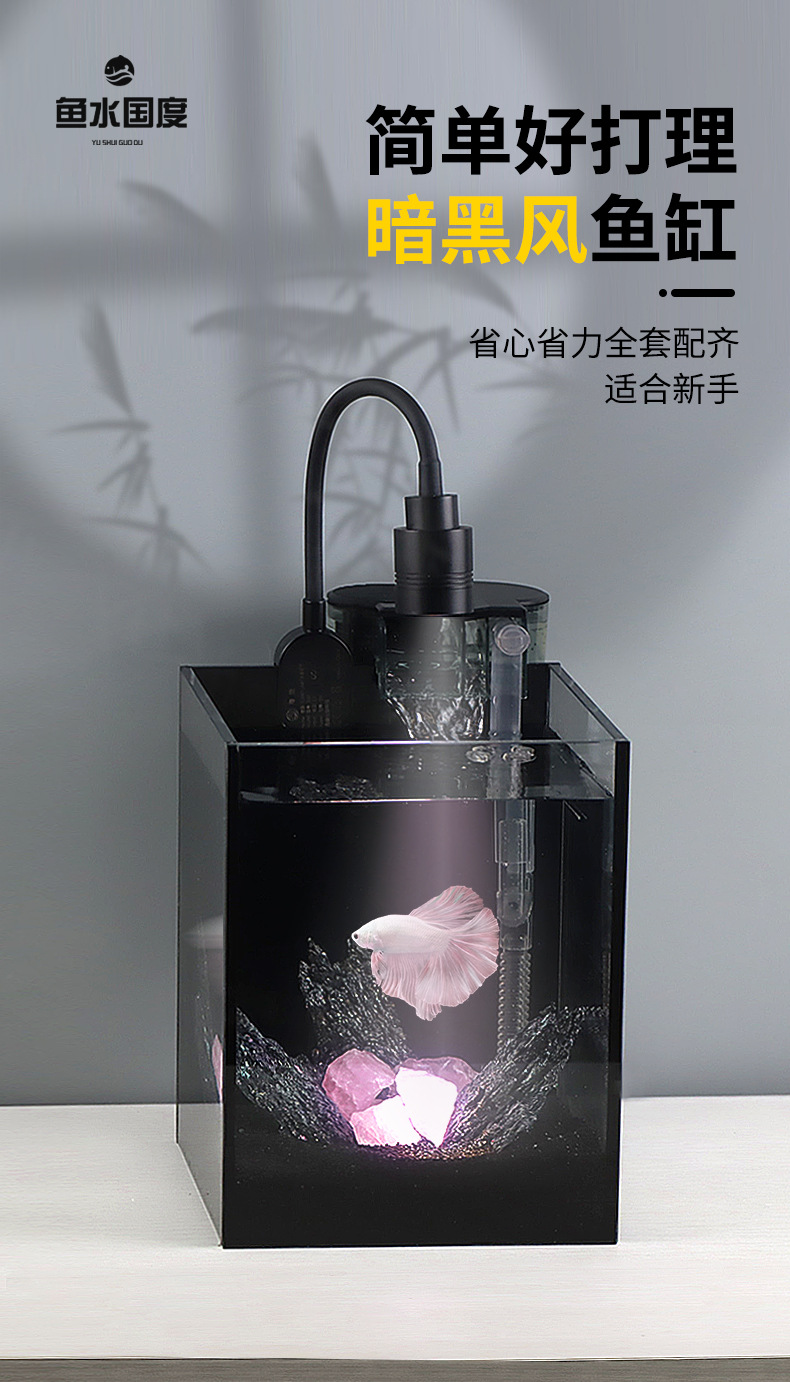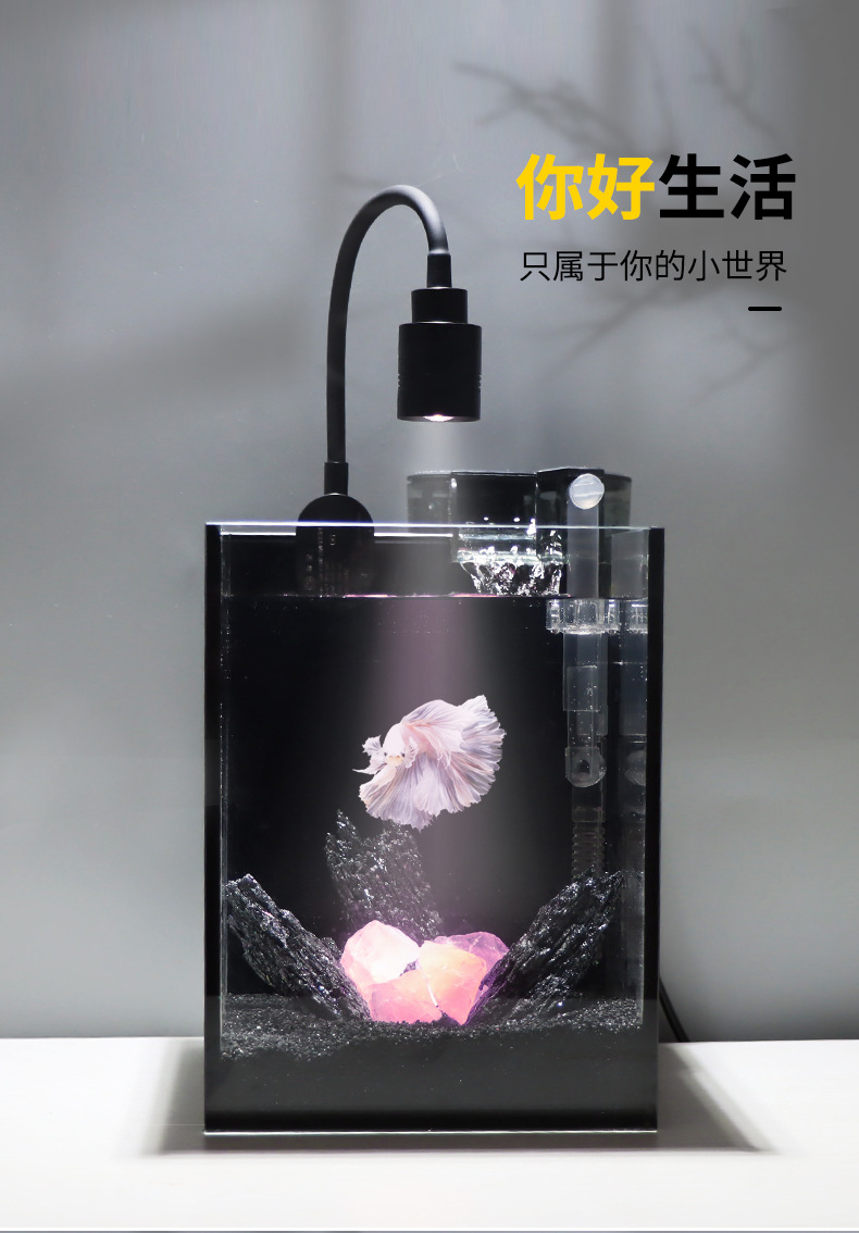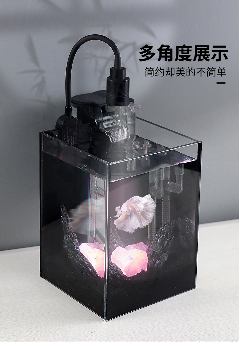 다크 스타일 데스크탑 수조 핑크 크리스탈 작은 유리 탱크 자체 순환 물 교환 없음 betta 생태 조경 수조스토어 가기