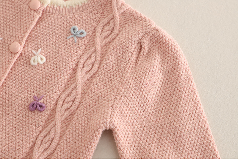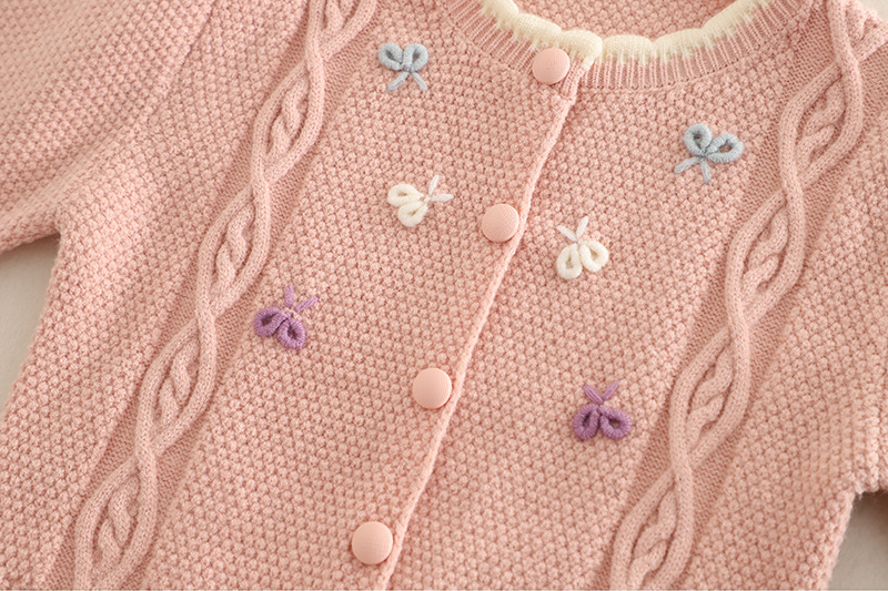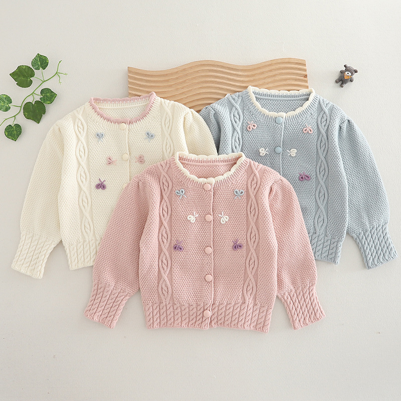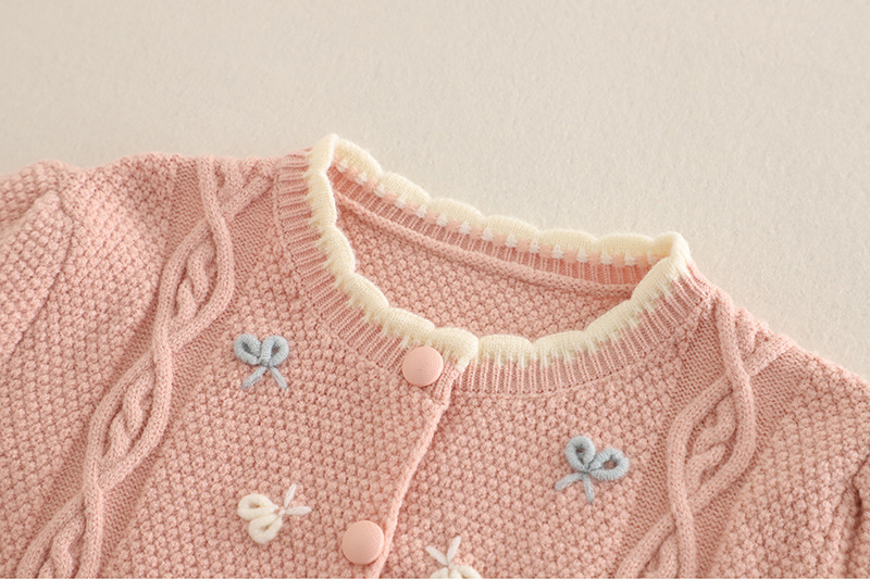 2025 봄 새 여자 카디건 어린이 스웨터 어린이 수 놓은 나비 매듭 스웨터 긴 소매 아기 스웨터