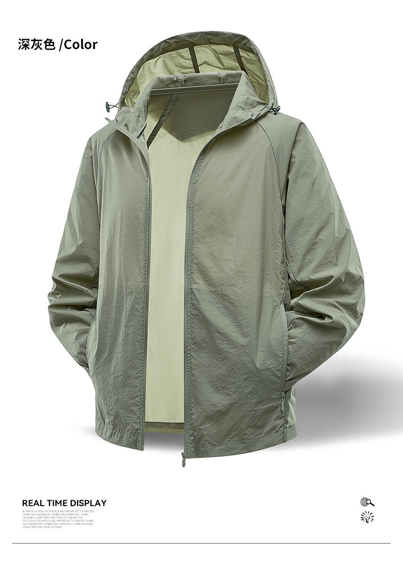 아이스 실크 태양 보호 의류 남성 여름 야외 남성 캐주얼 남성 통기성 태양 보호 의류 재킷 남성 후드 스킨 의류