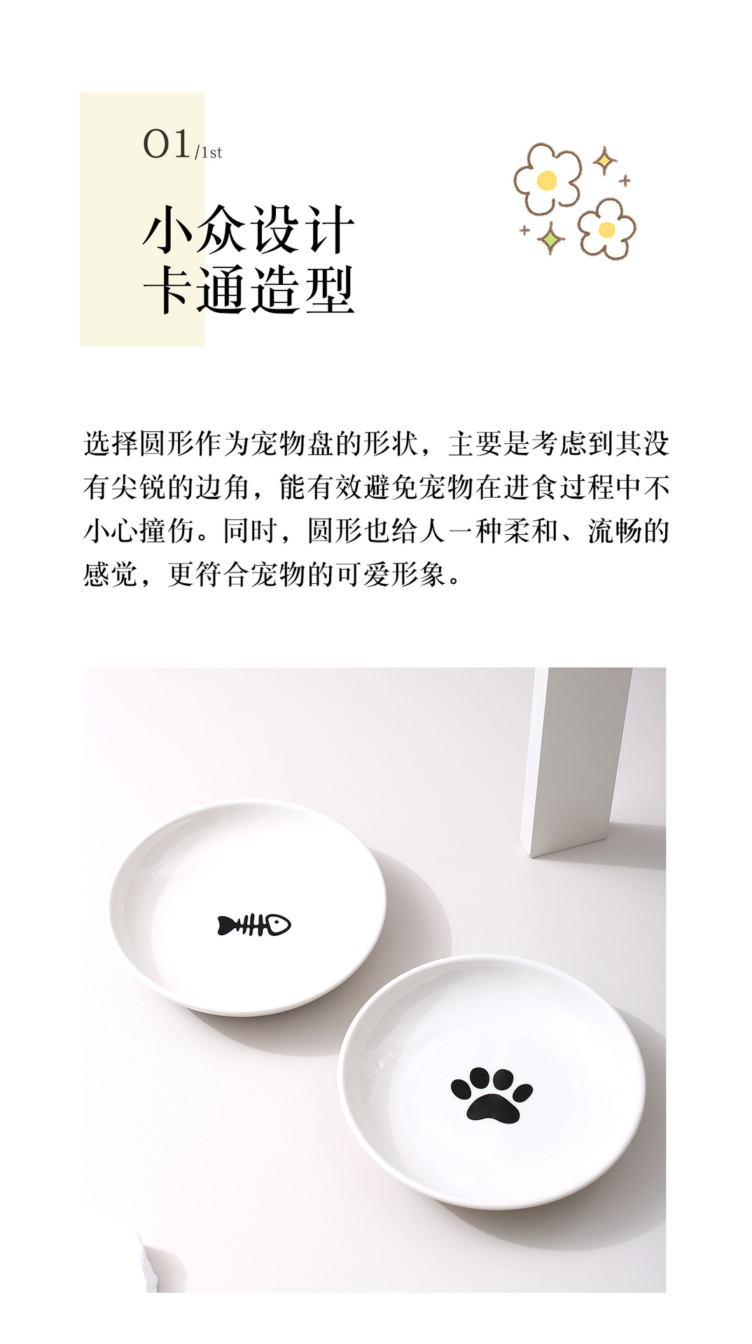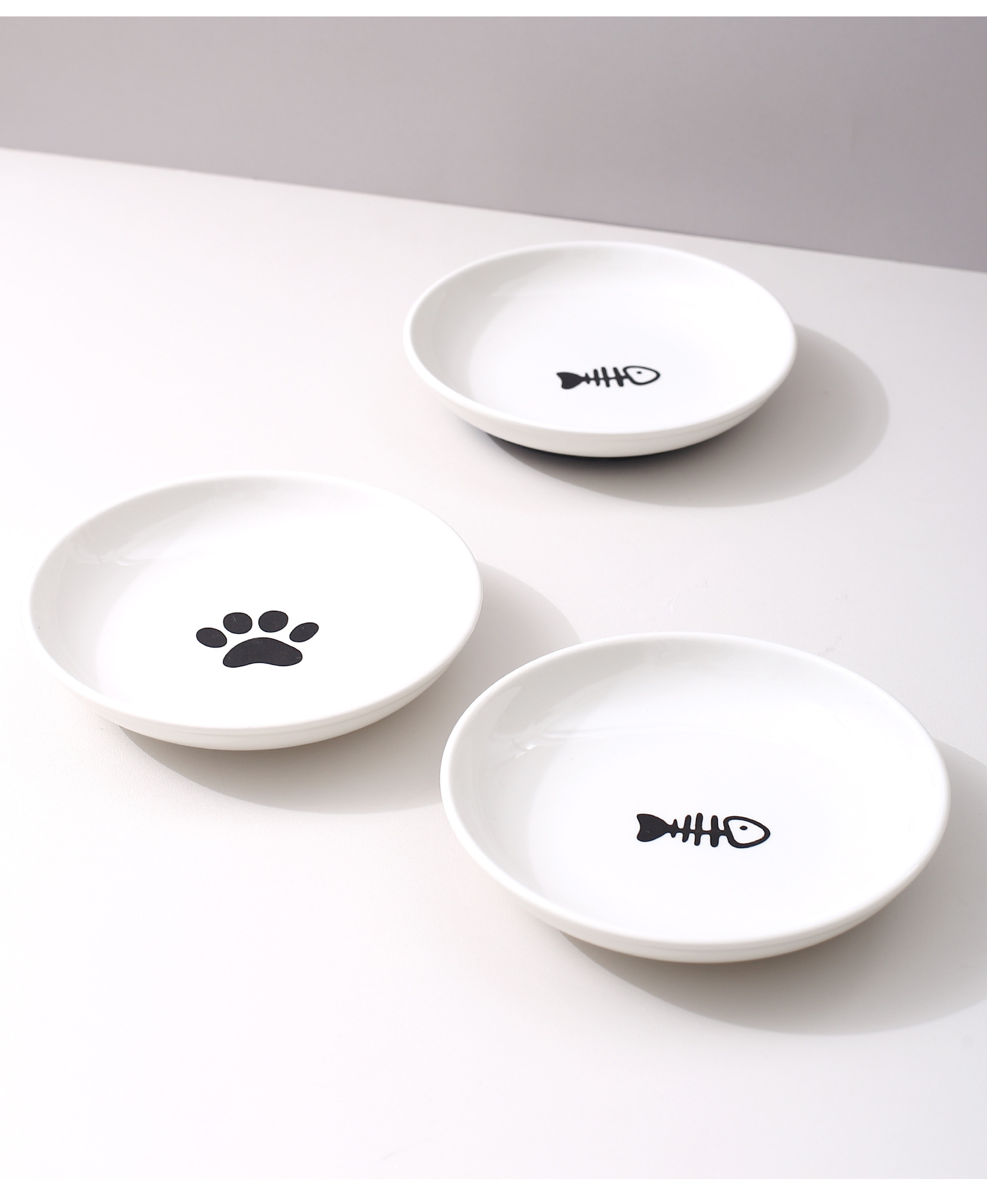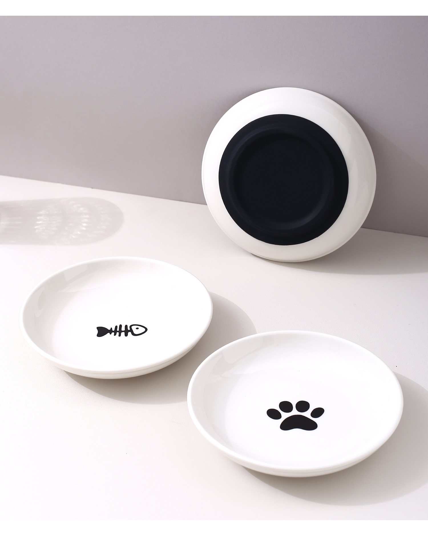 실리콘 패드가 있는 심플한 스타일의 고양이 발톱 물고기 뼈 패턴 애완 동물 접시 세라믹 그릇 고양이 밥 그릇 고양이 그릇 개 그릇 뒤집힘 방지스토어 가기