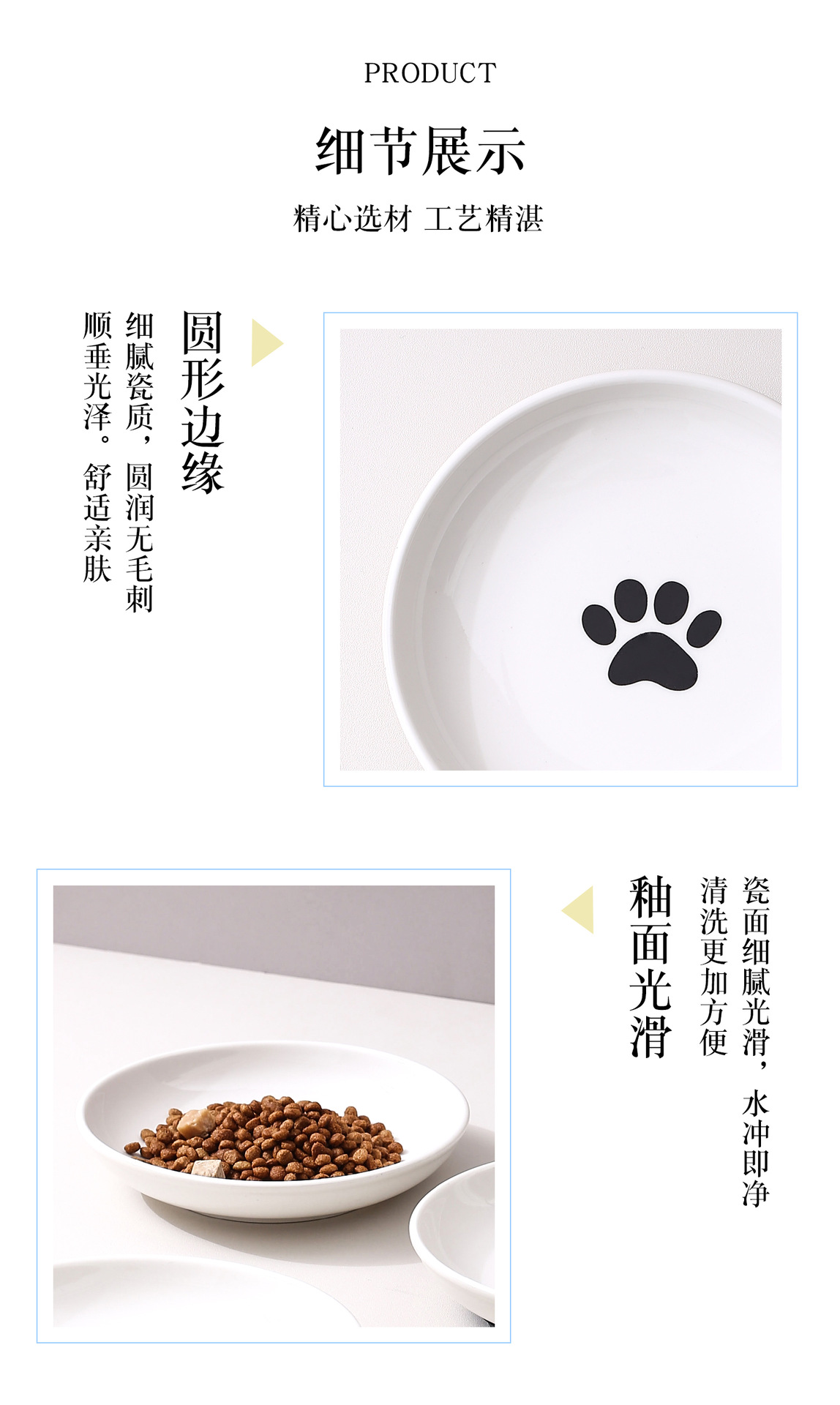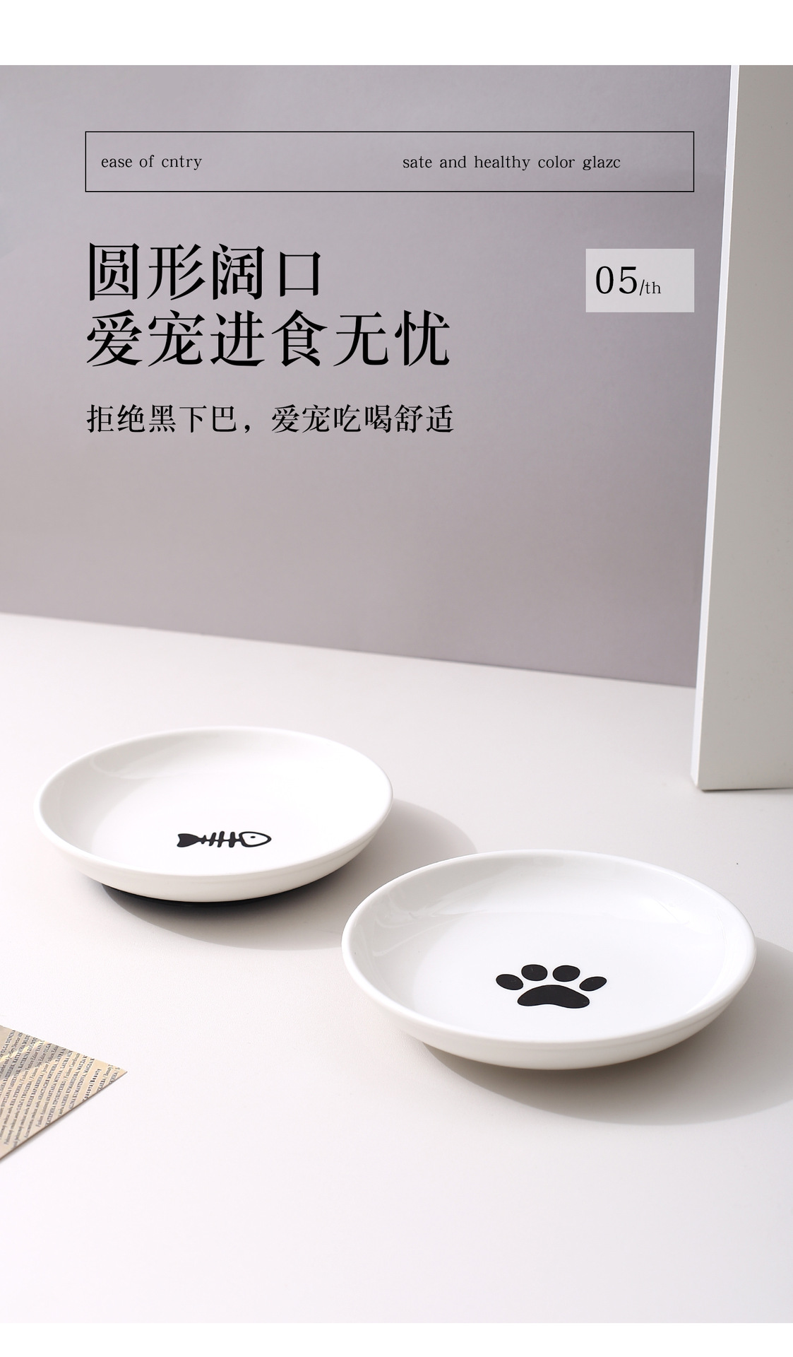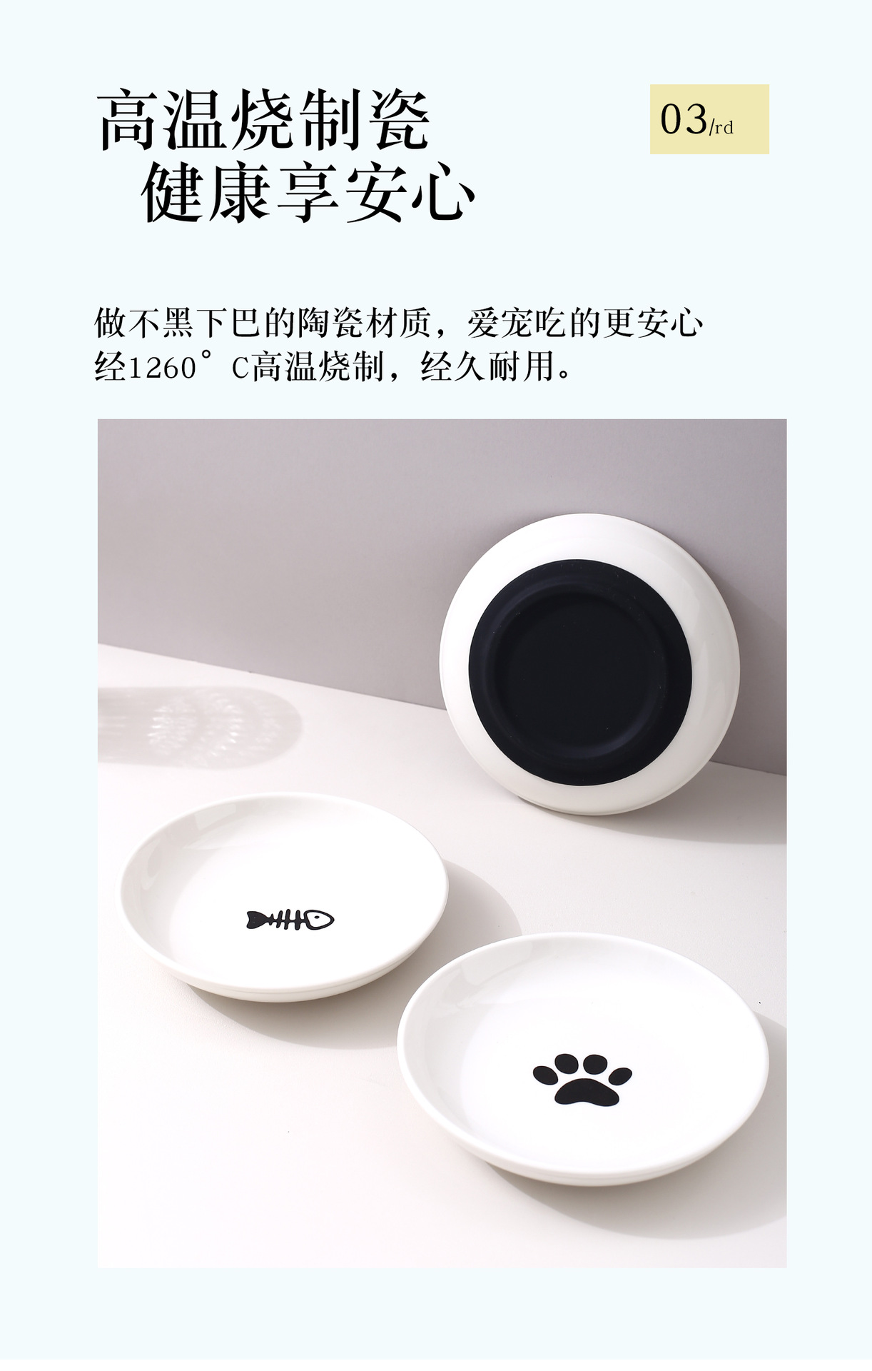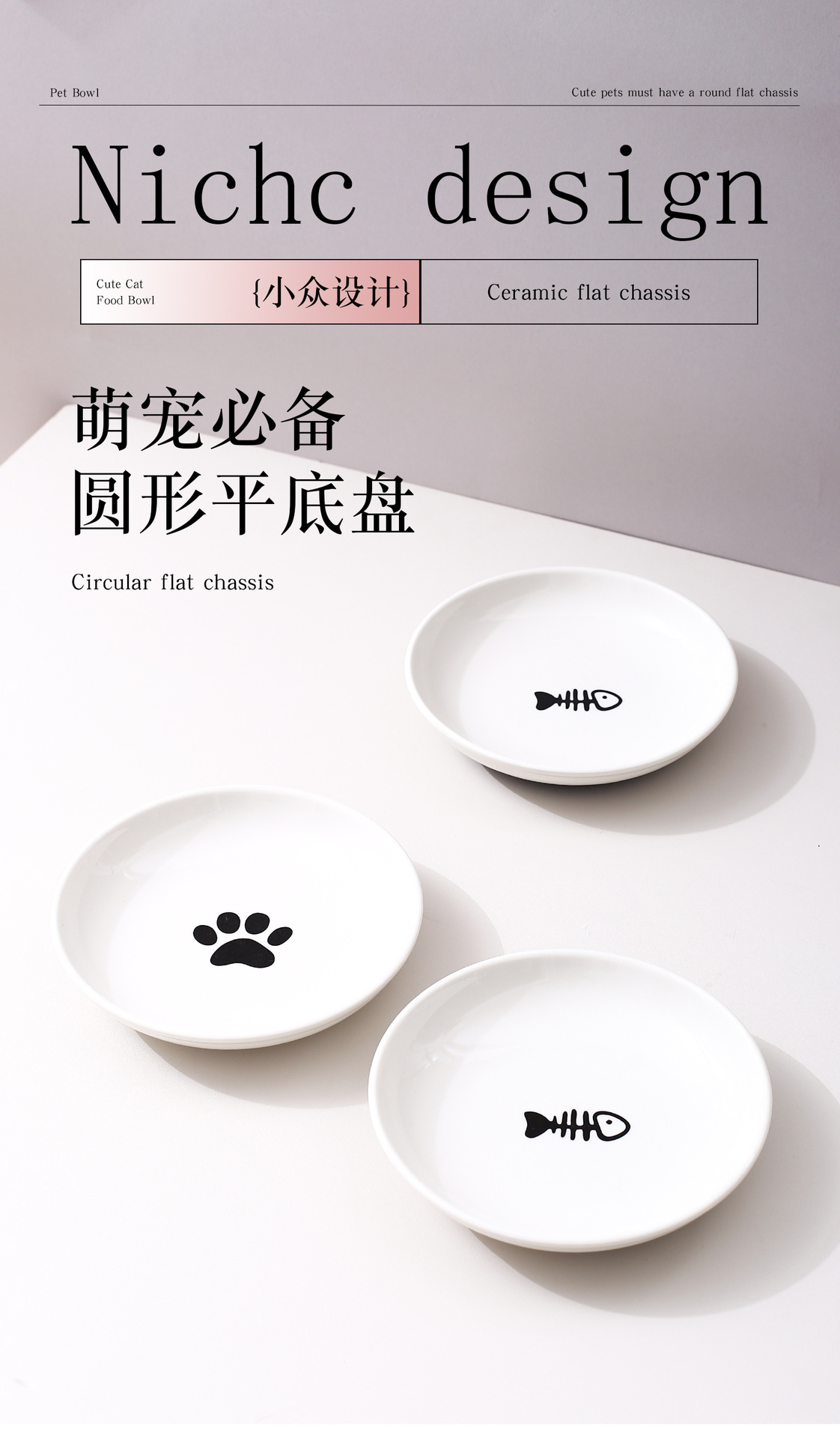 실리콘 패드가 있는 심플한 스타일의 고양이 발톱 물고기 뼈 패턴 애완 동물 접시 세라믹 그릇 고양이 밥 그릇 고양이 그릇 개 그릇 뒤집힘 방지스토어 가기