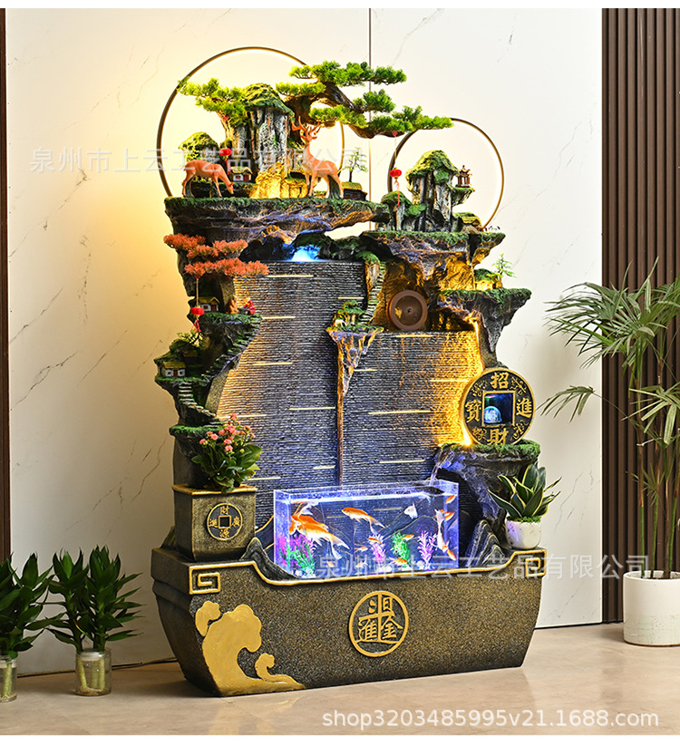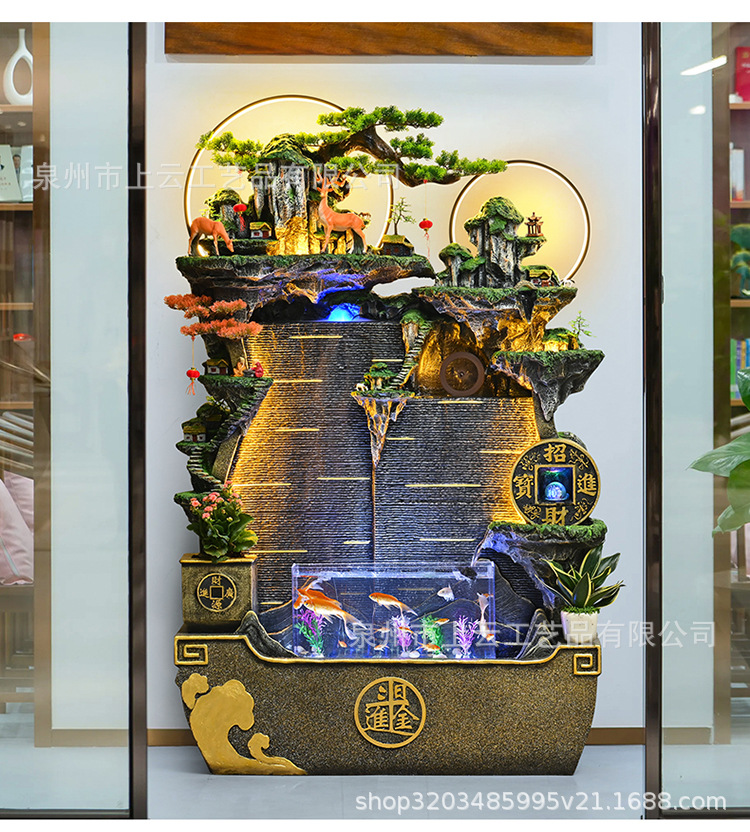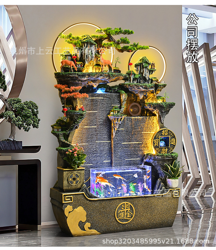 흐르는 물 분수 벽 커튼 물고기 탱크 사무실 안뜰 가파운드 풍경 장식품 거실 풍수 휠 순환 물 장식스토어 가기