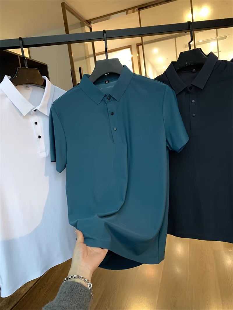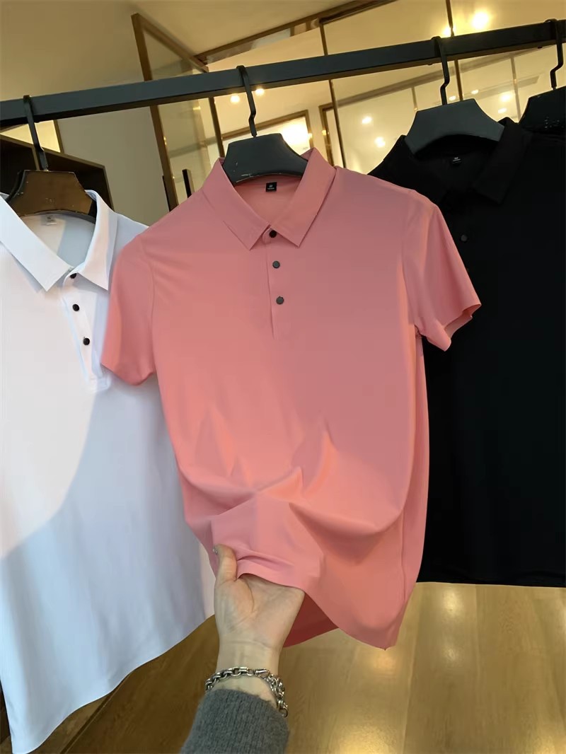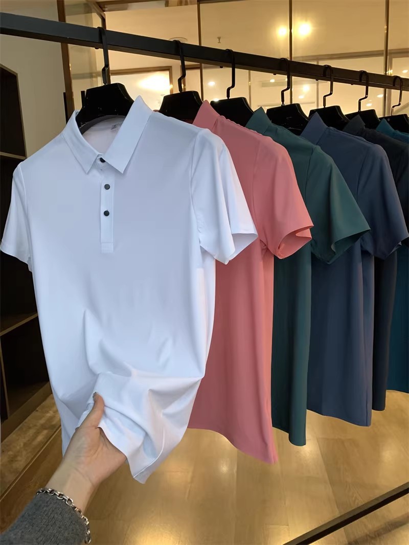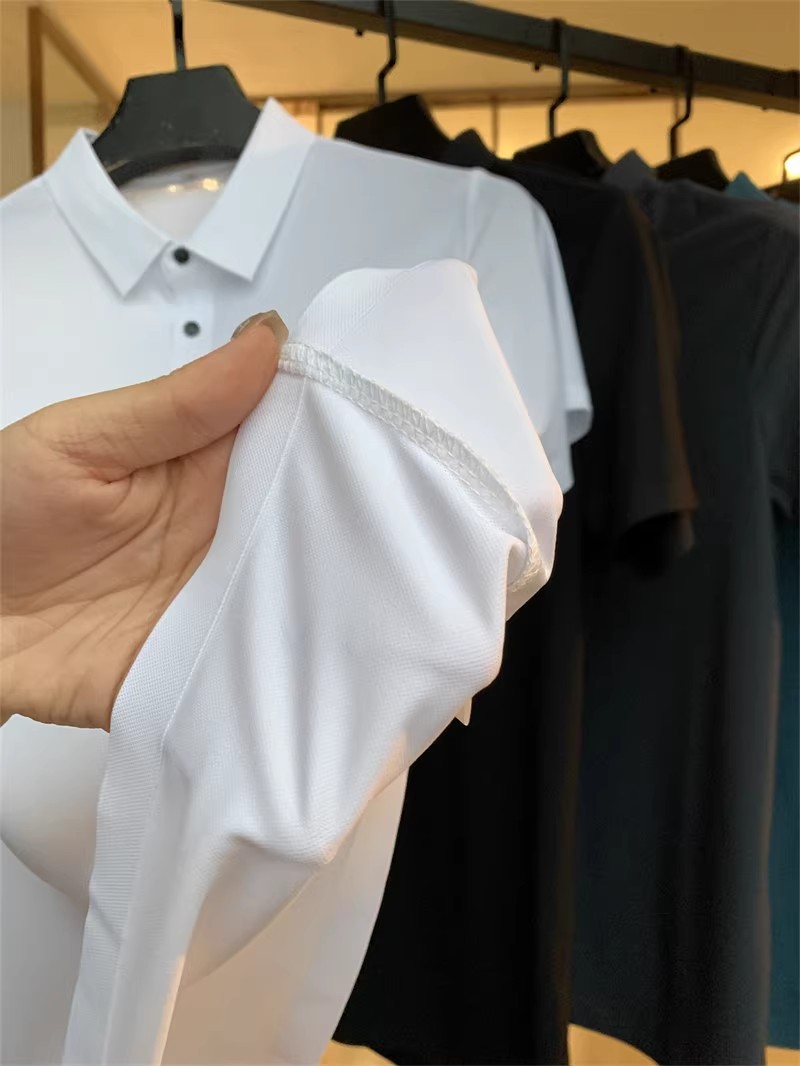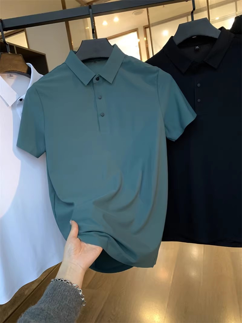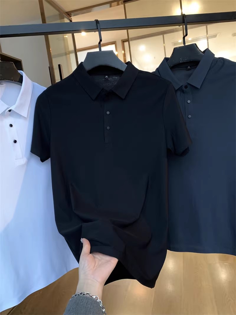 가벼운 고급 품질! 기술 얼음 실크 직물! 마크 압력 접착제 없음! 여름 남자 올 매치 솔리드 컬러 옷깃 폴로 셔츠