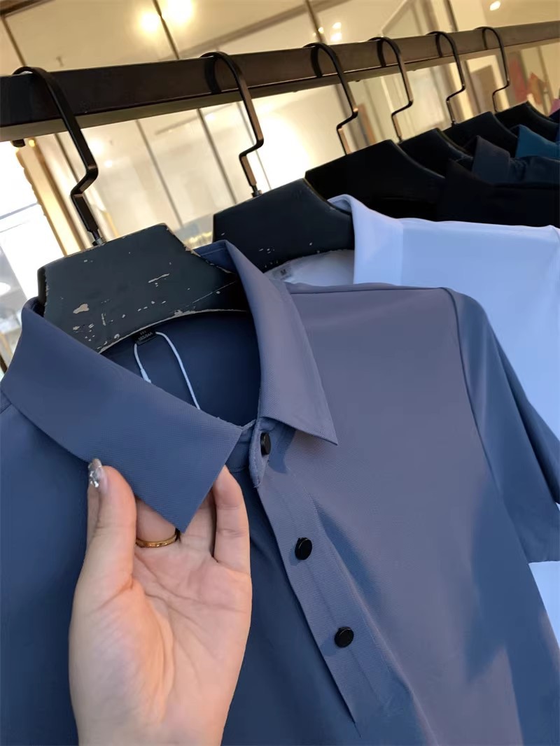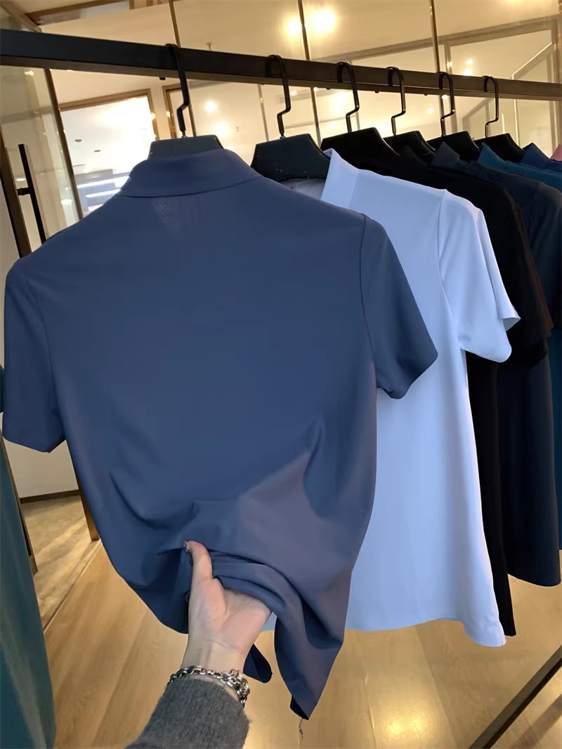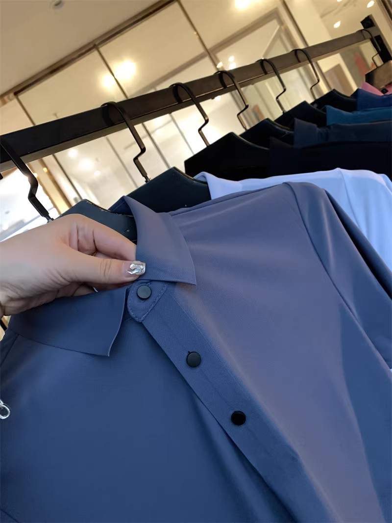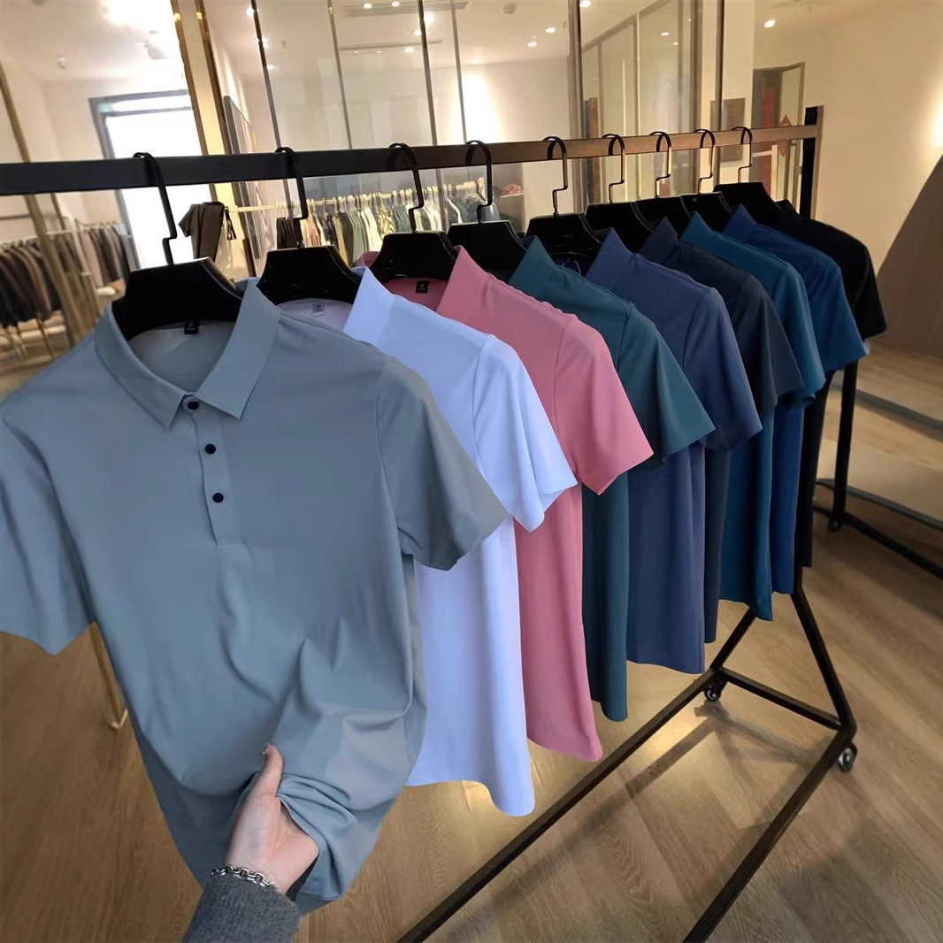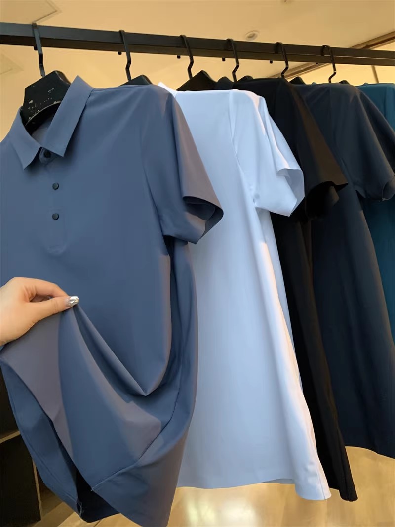 가벼운 고급 품질! 기술 얼음 실크 직물! 마크 압력 접착제 없음! 여름 남자 올 매치 솔리드 컬러 옷깃 폴로 셔츠