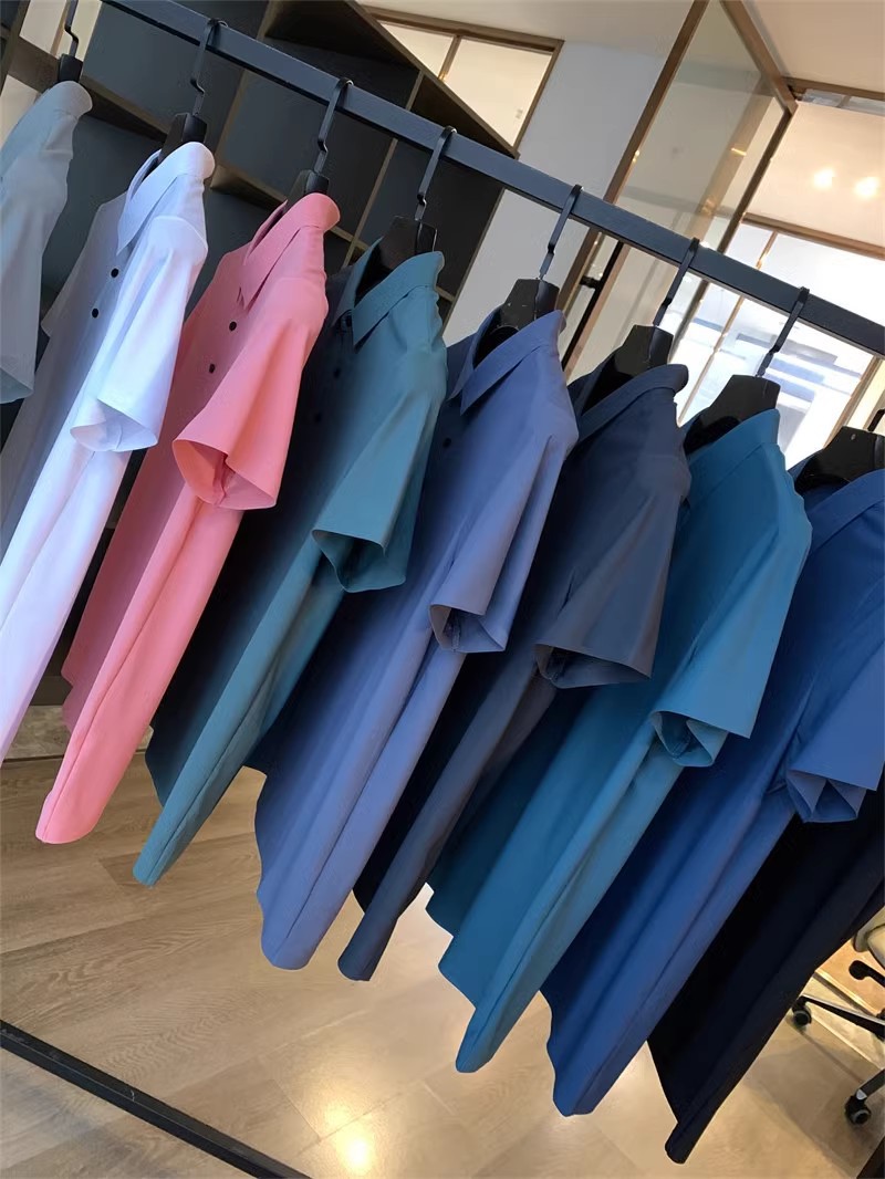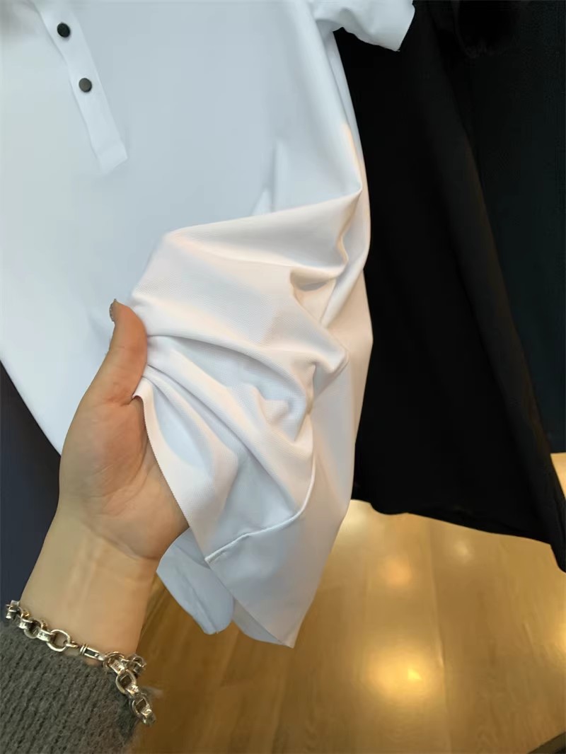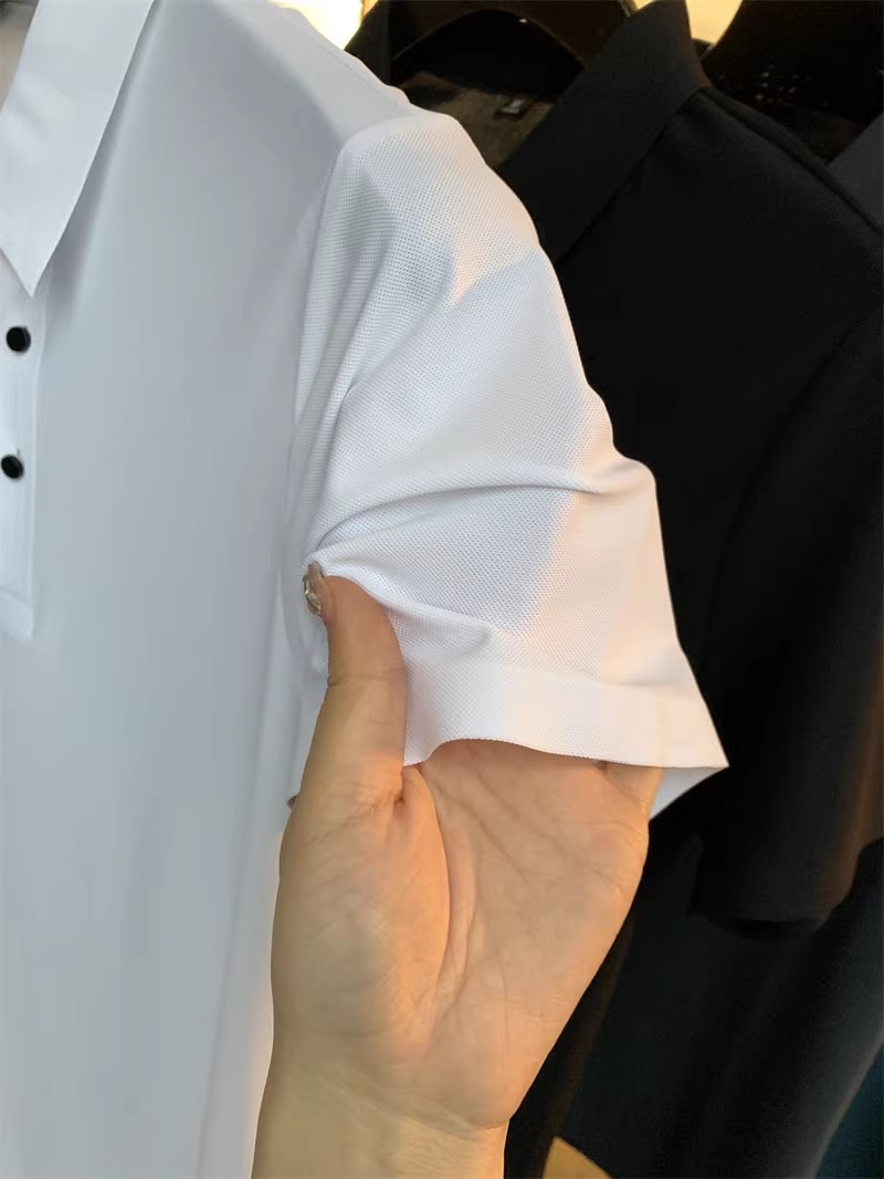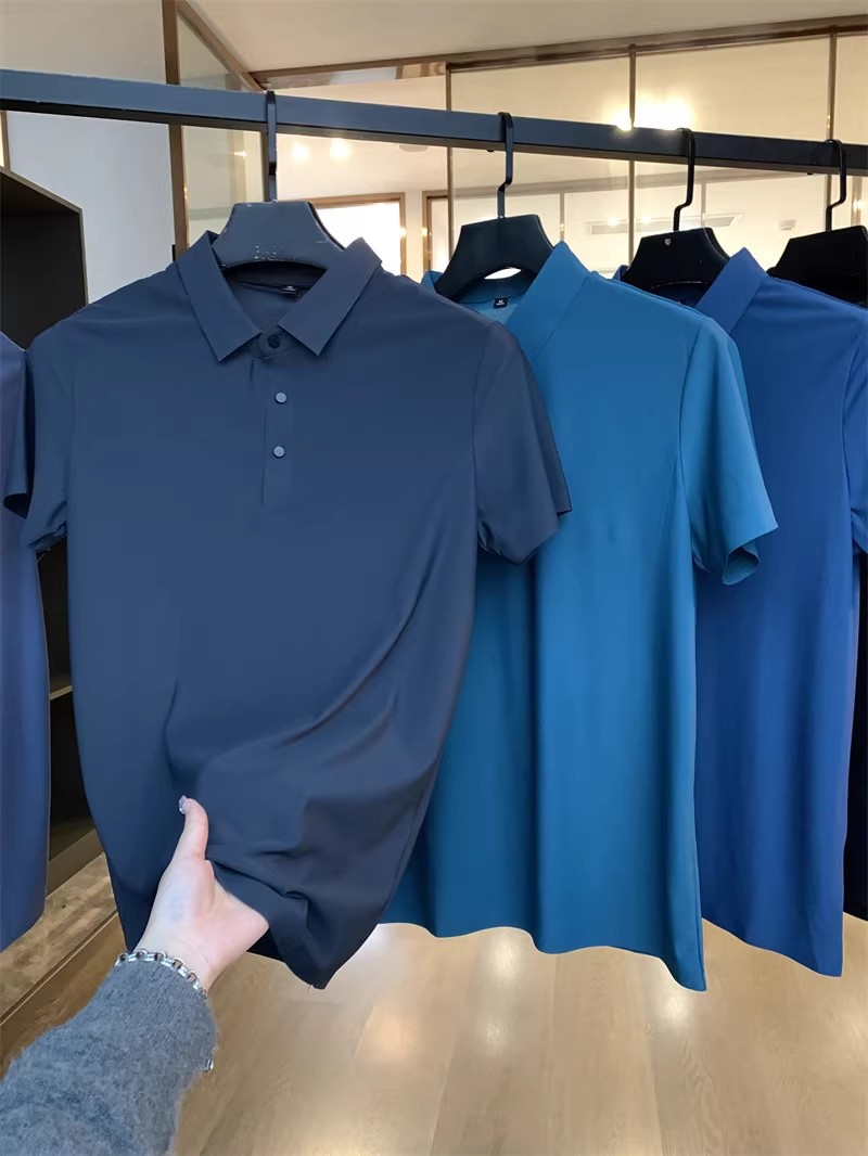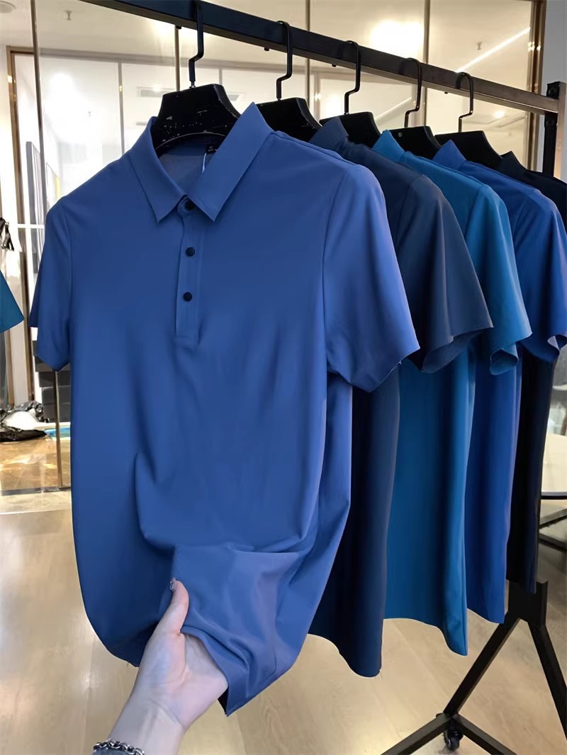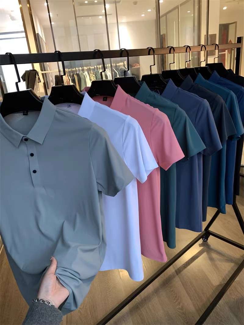 가벼운 고급 품질! 기술 얼음 실크 직물! 마크 압력 접착제 없음! 여름 남자 올 매치 솔리드 컬러 옷깃 폴로 셔츠