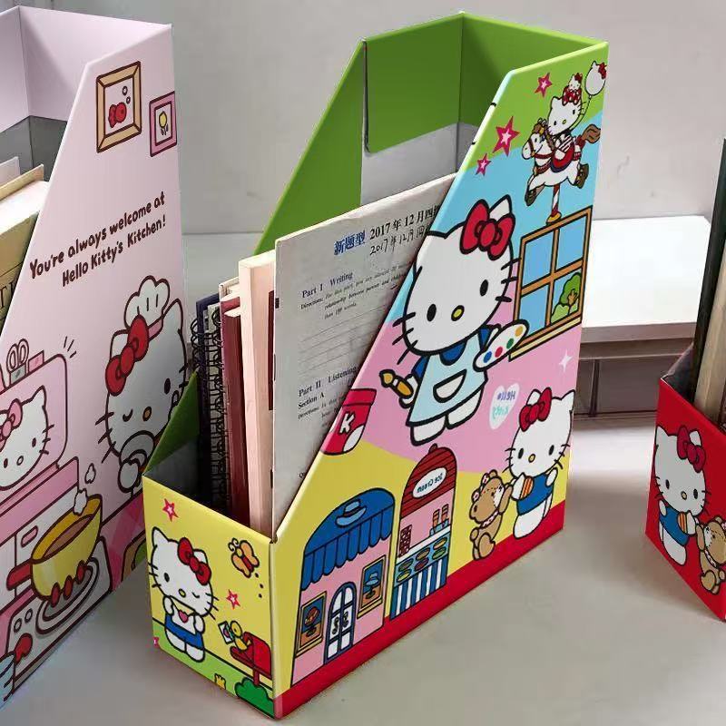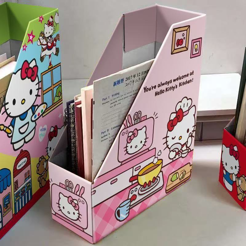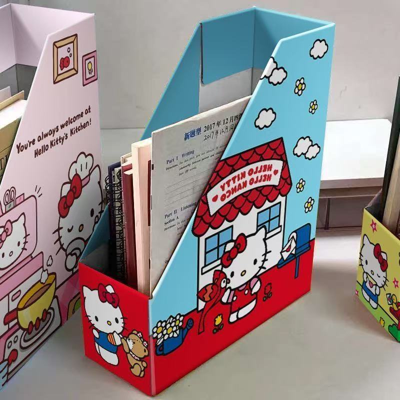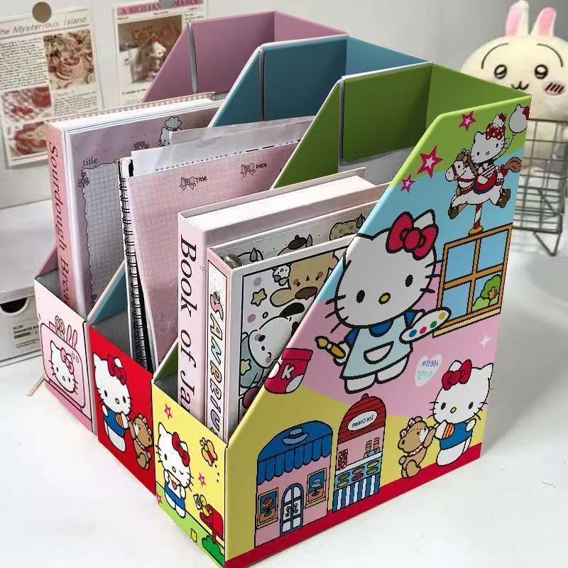 3 색 키티 만화 책 스탠드 저장 상자 데스크탑 책장 종이 폴더 만화 귀여운 책 스탠드