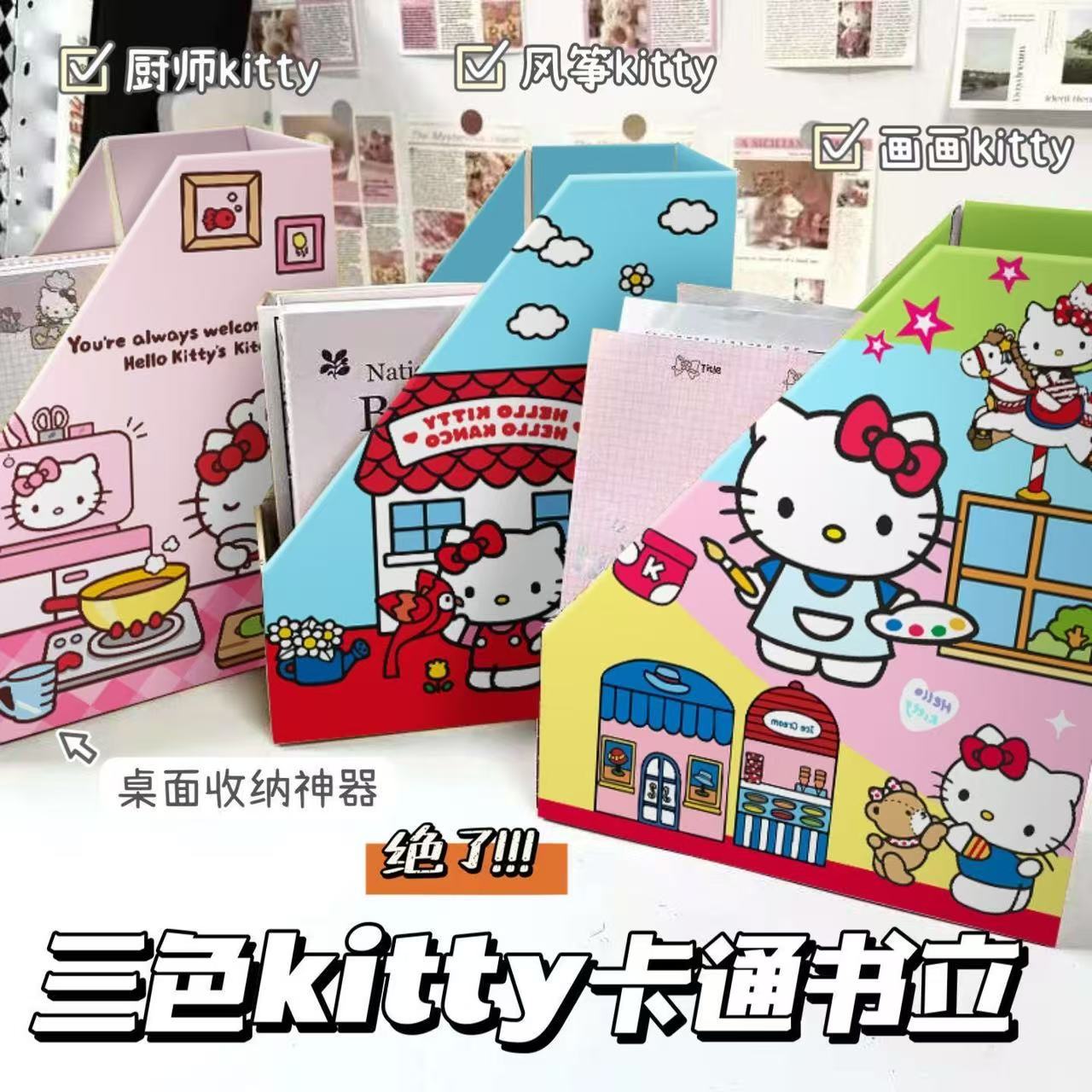 3 색 키티 만화 책 스탠드 저장 상자 데스크탑 책장 종이 폴더 만화 귀여운 책 스탠드스토어 가기
