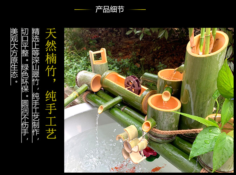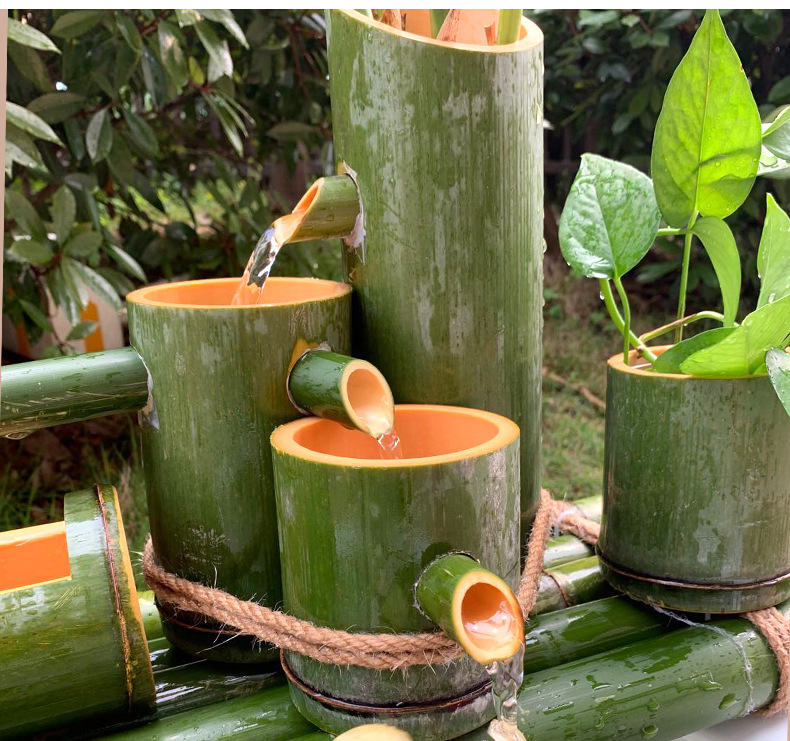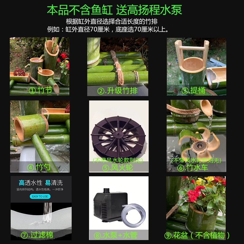 대나무 튜브 물 분배기, 수조, 물고기 냄비, 돌로, 물고기 순환 필터, 분수, 산소 공급, 유치원 태양열 장식품