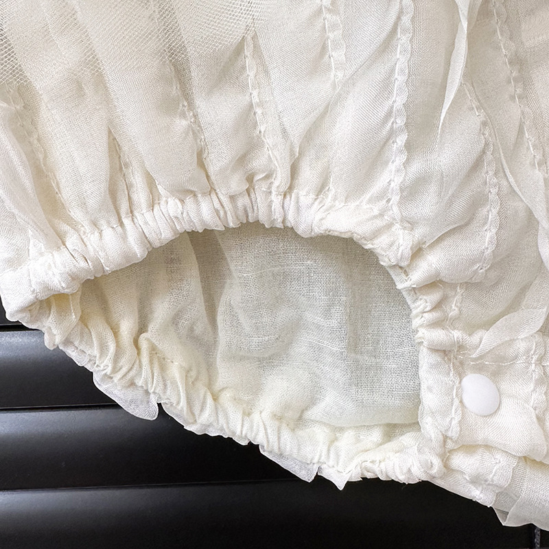 • 버드 슬리브 패치워크 거즈 탑 베이지