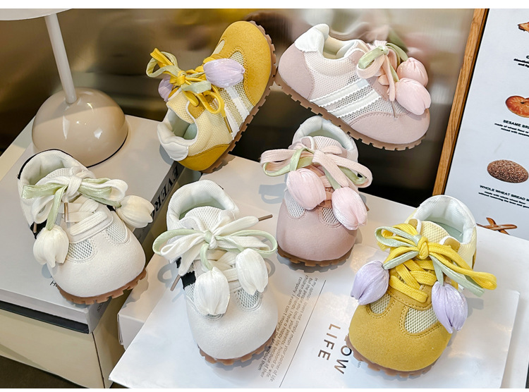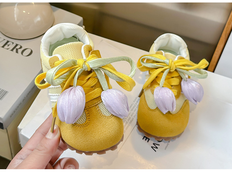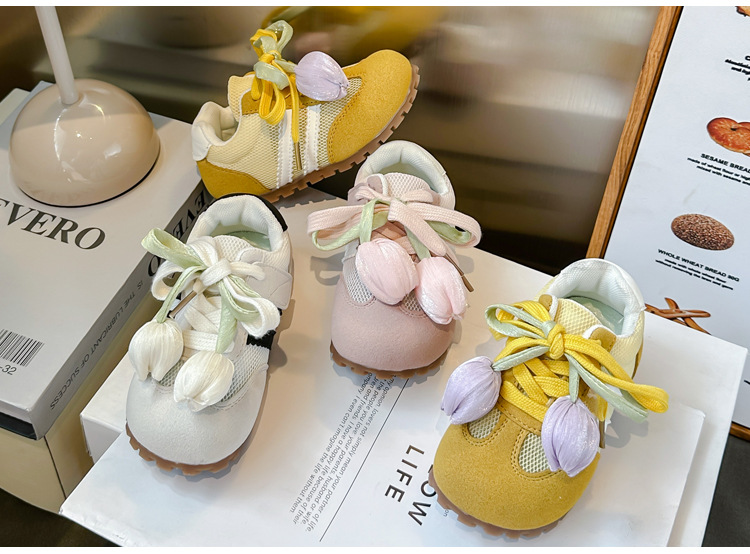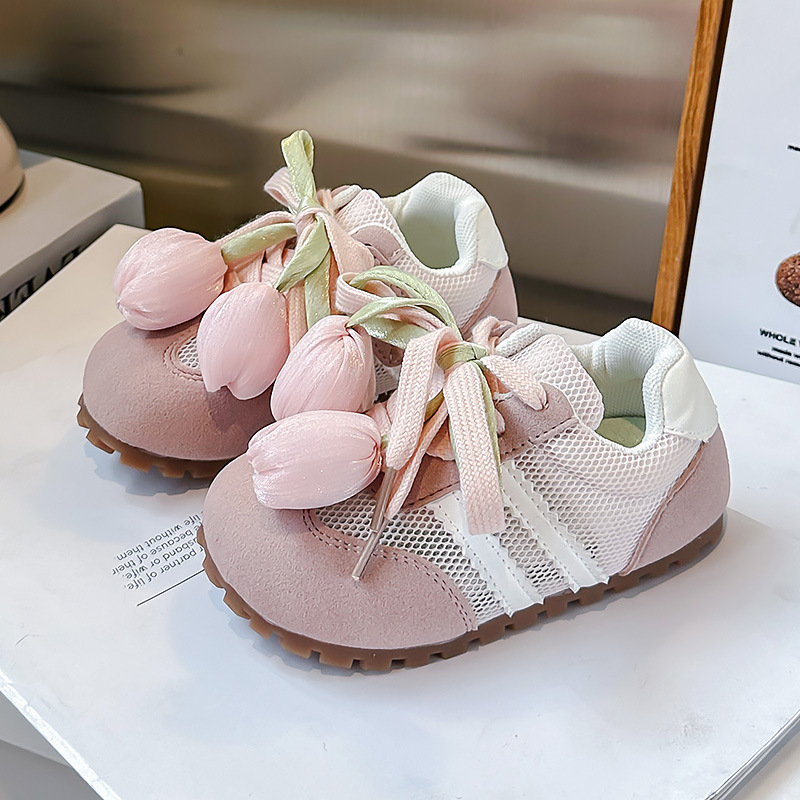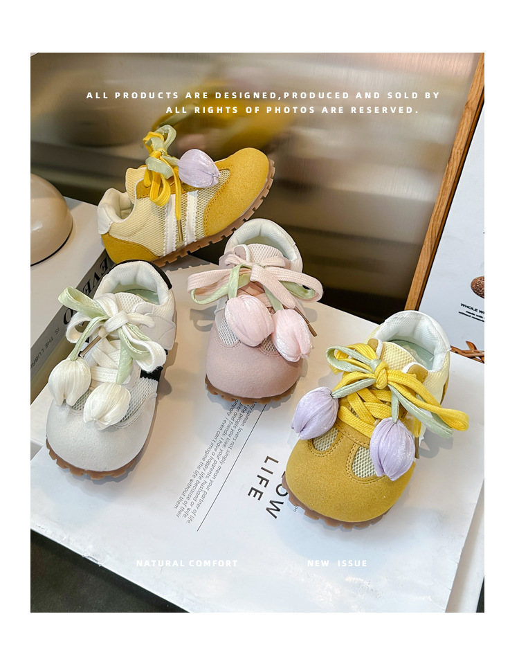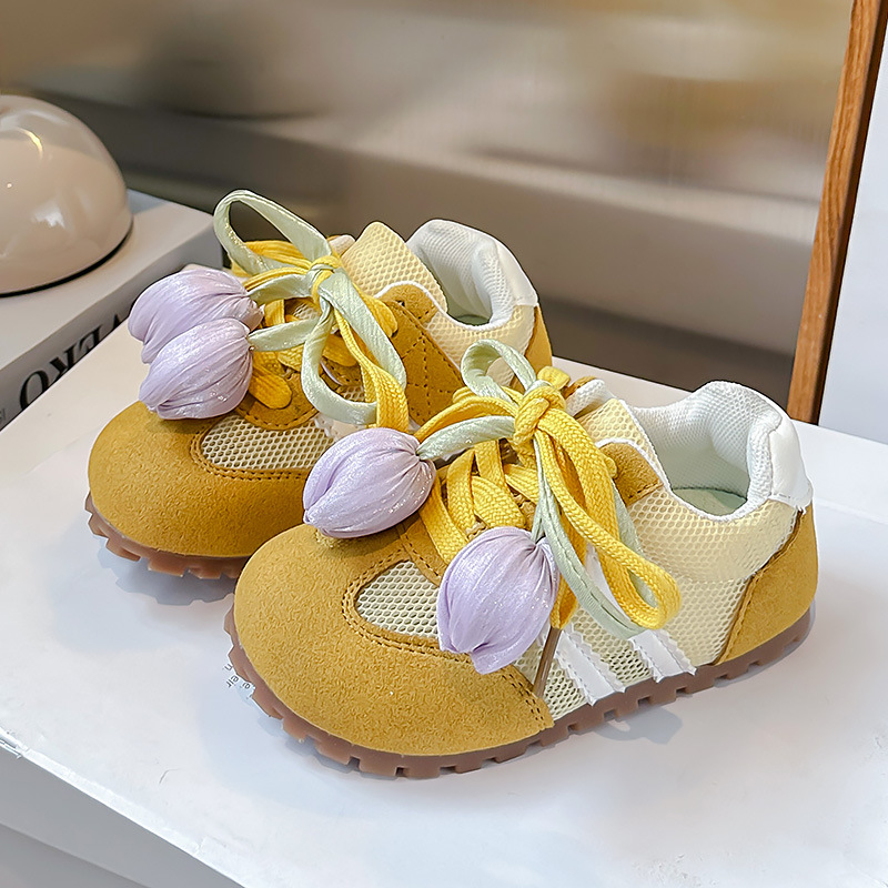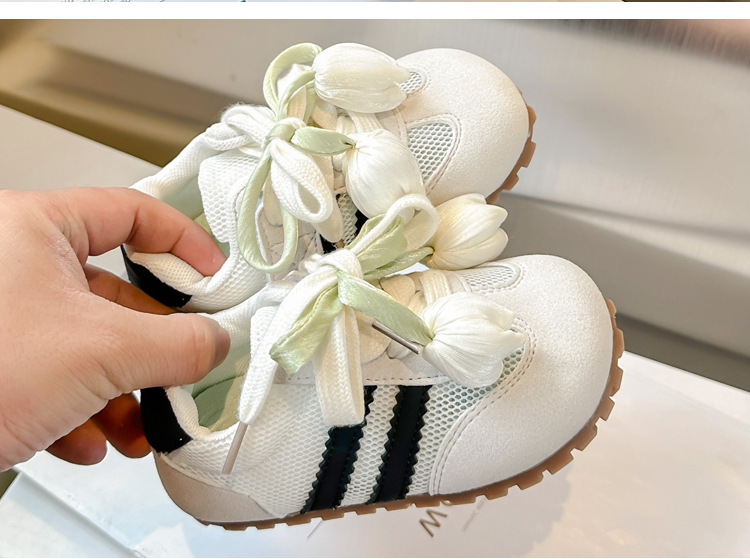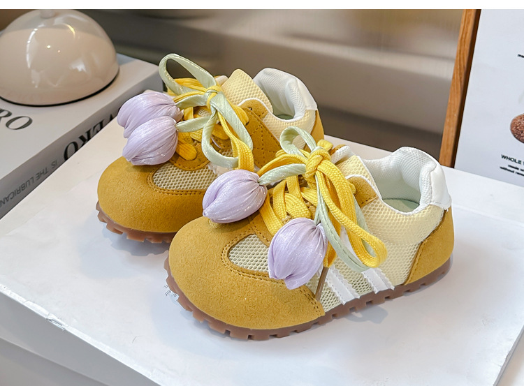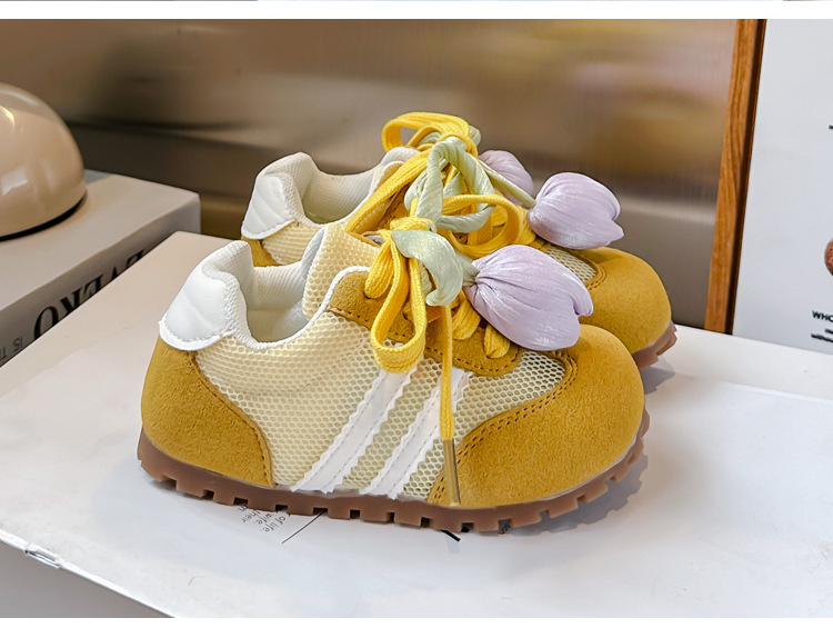 어린이 솔리드 컬러 운동화 2025 여름 귀여운 신발 끈 작은 멀티 플라워 캐주얼 신발 대학 스타일 런닝 신발 어린이 신발