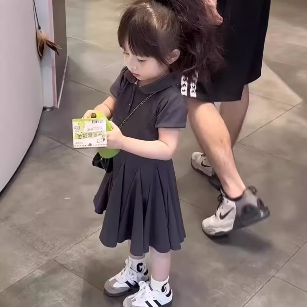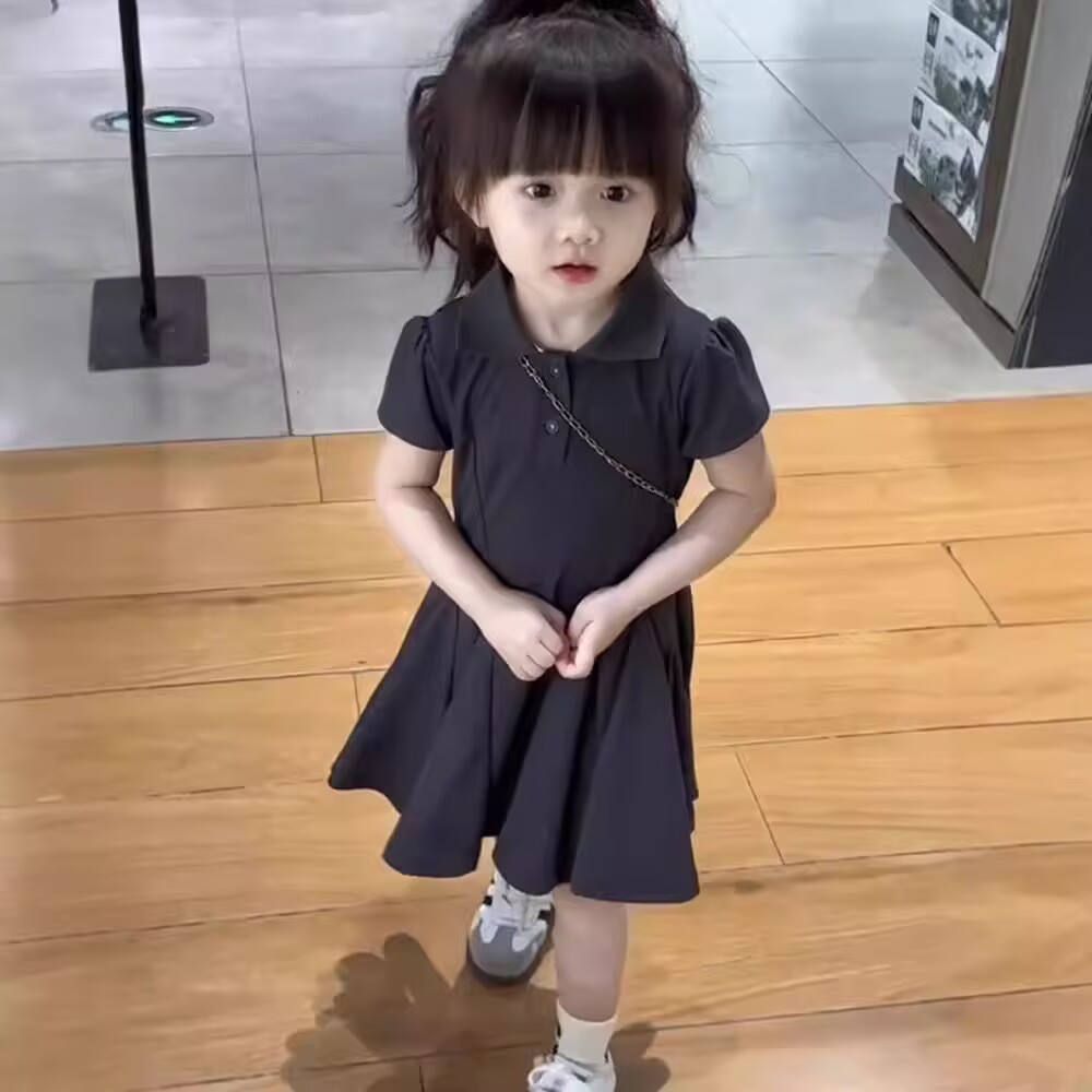 소녀 원피스 여름 2025 새로운 짧은 소매 옷깃 POLO 어린이 캐주얼 스커트 아기 여자 대학 스타일 스커트스토어 가기