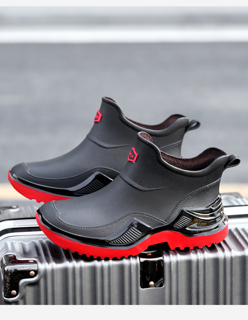 밀리터리 그린 트렌디하고 패셔너블한 남성용 짧은 장화, 스포츠 스타일 남성용 방수 고무신, 두껍고 넓어진 미끄럼 방지 남성용 대외 무역 장화
