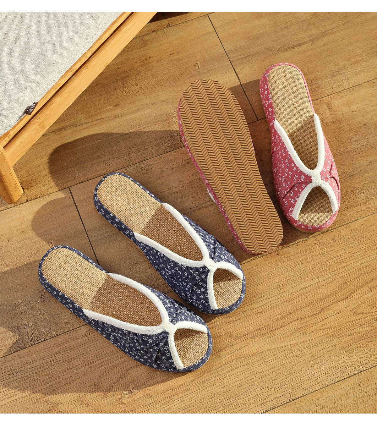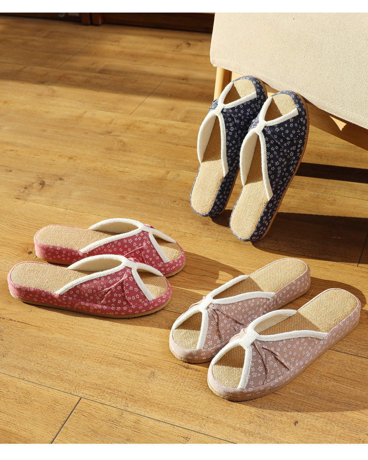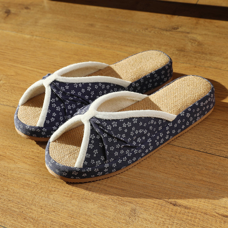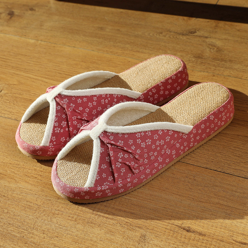 여성을위한 일본식 작은 꽃무늬 린넨 슬리퍼 여름 실내 귀여운 부드러운 바닥 가정용 봄, 가을 사무실 면화 및 린넨 슬리퍼스토어 가기