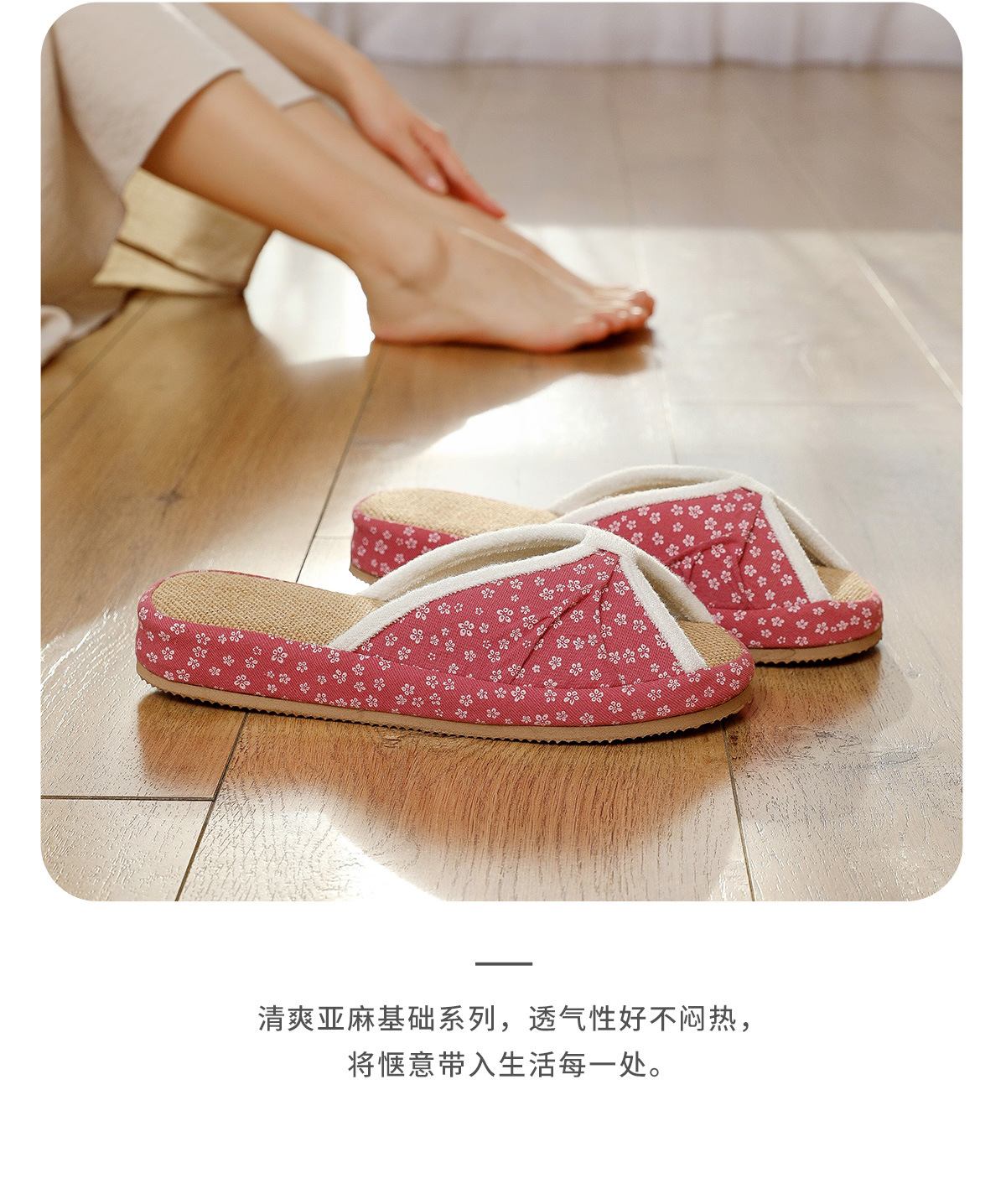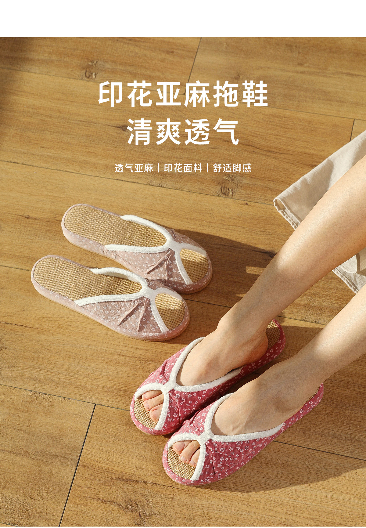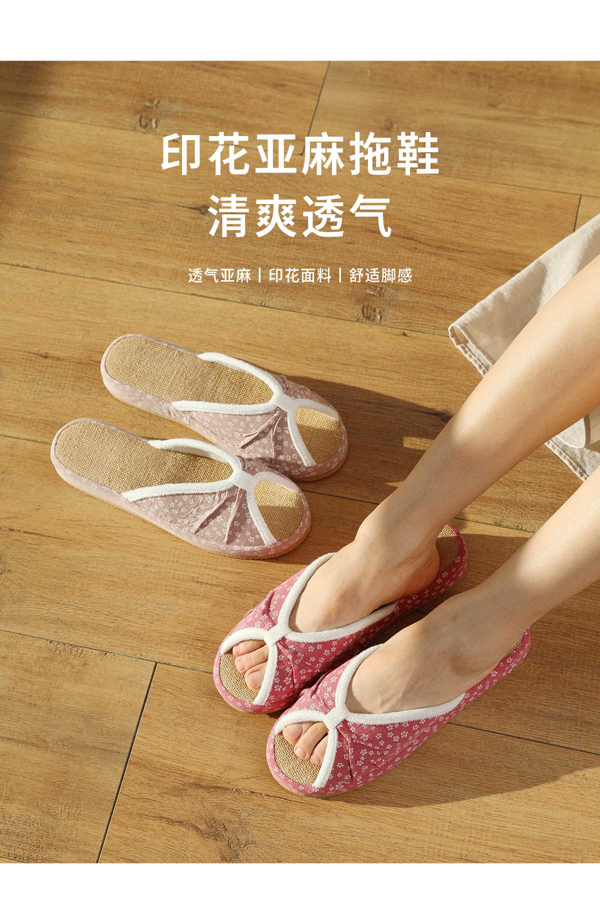 여성을위한 일본식 작은 꽃무늬 린넨 슬리퍼 여름 실내 귀여운 부드러운 바닥 가정용 봄, 가을 사무실 면화 및 린넨 슬리퍼스토어 가기