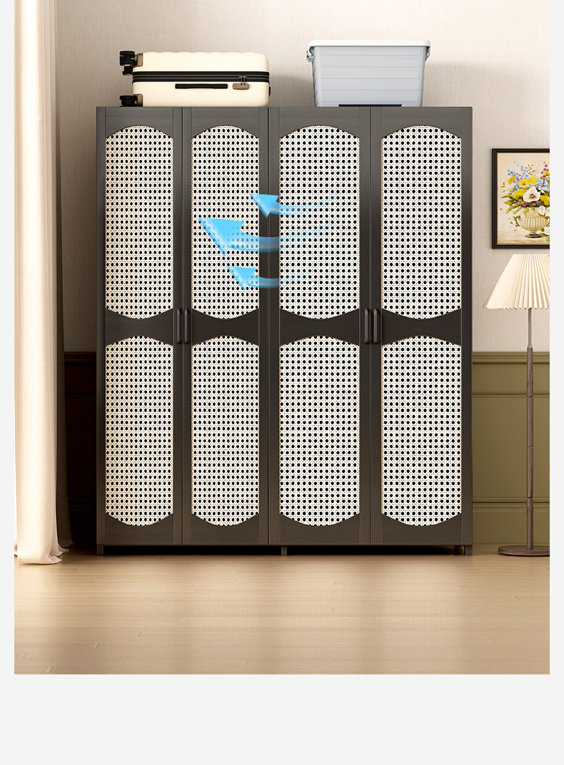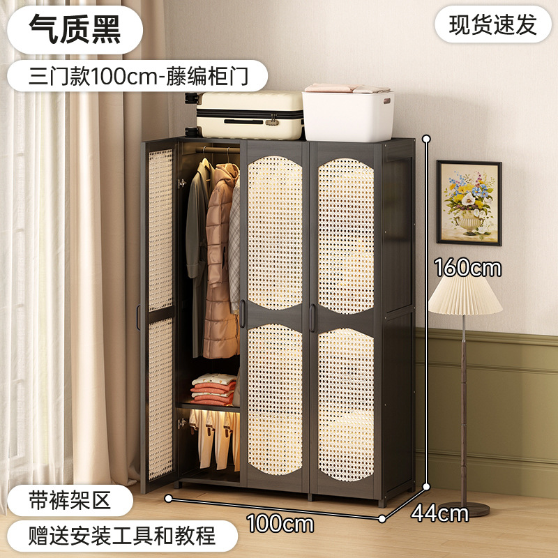 가정용 간단한 플라스틱 등나무 옷장 옷걸이 통기성 침실 조립 옷장 비 단단한 목재 임대 보관