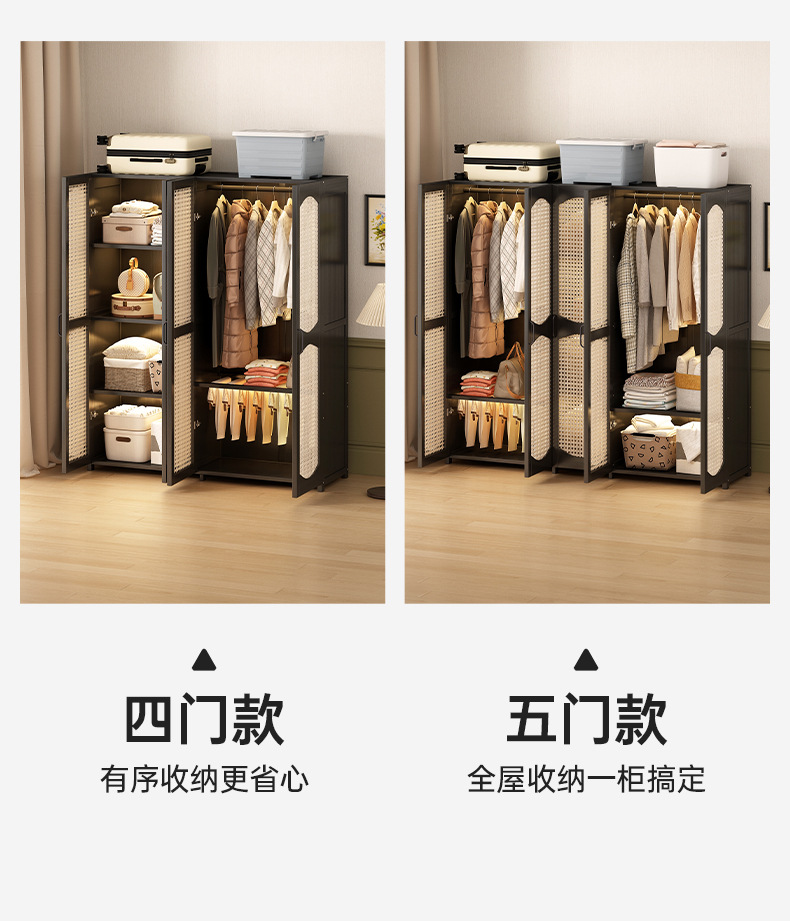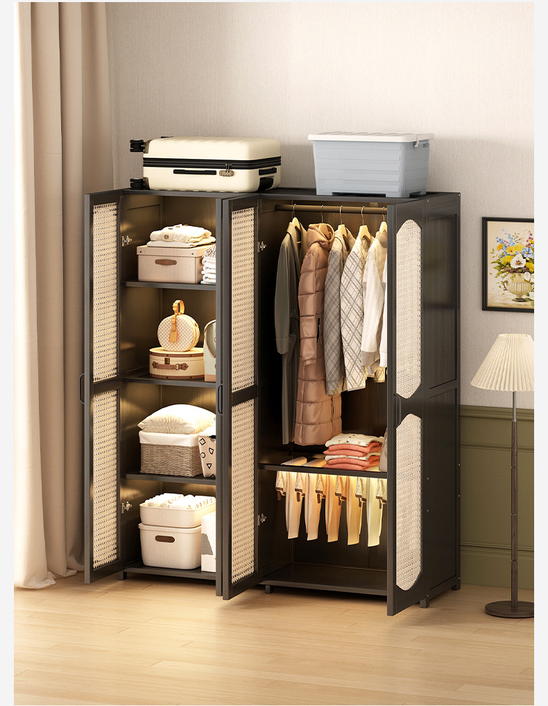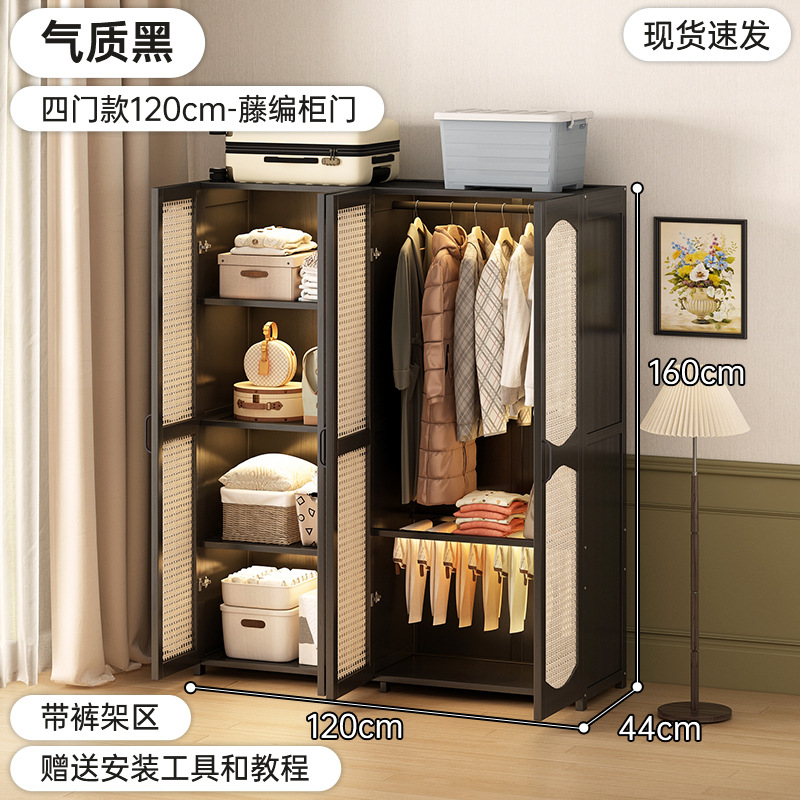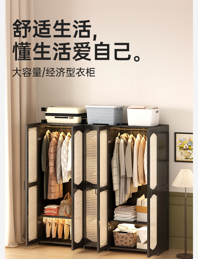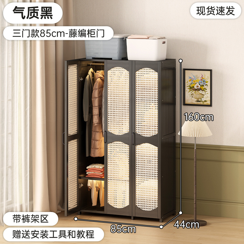 가정용 간단한 플라스틱 등나무 옷장 옷걸이 통기성 침실 조립 옷장 비 단단한 목재 임대 보관스토어 가기