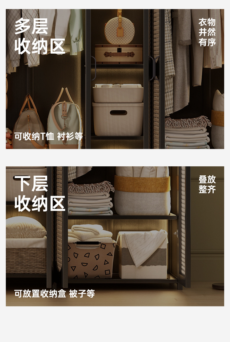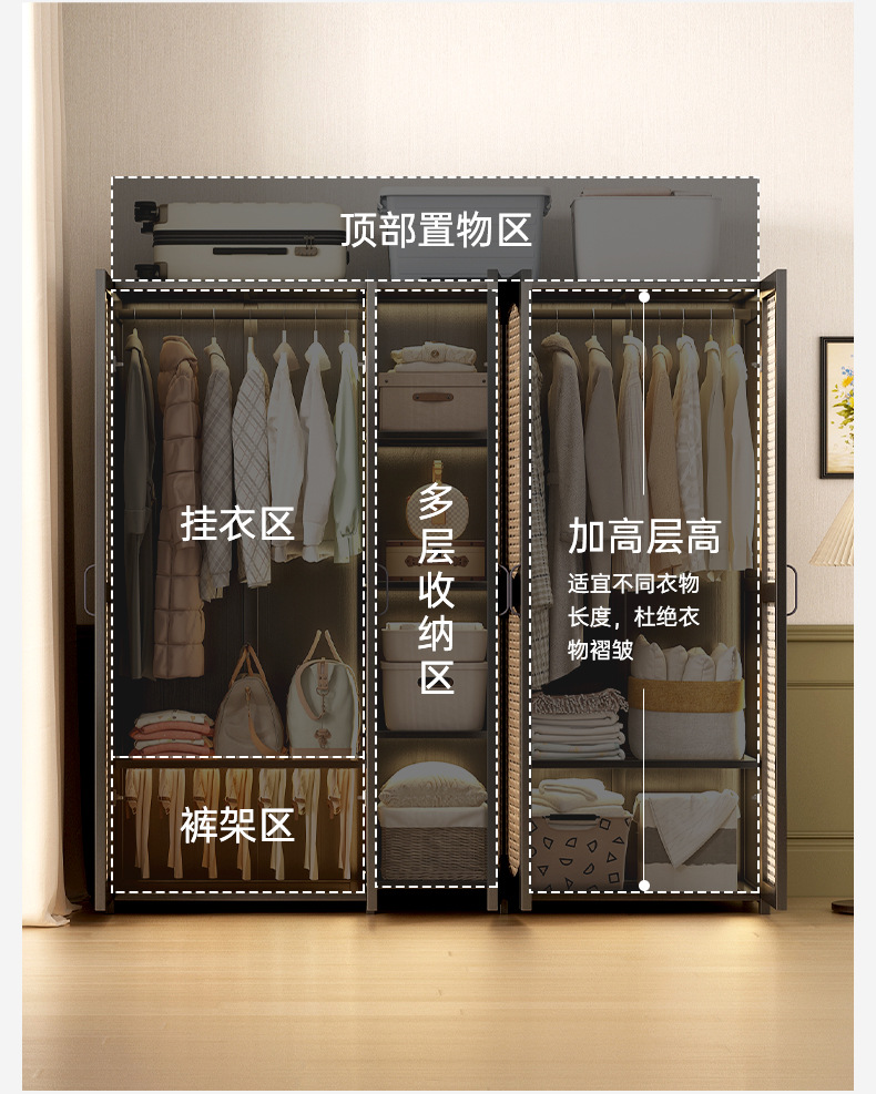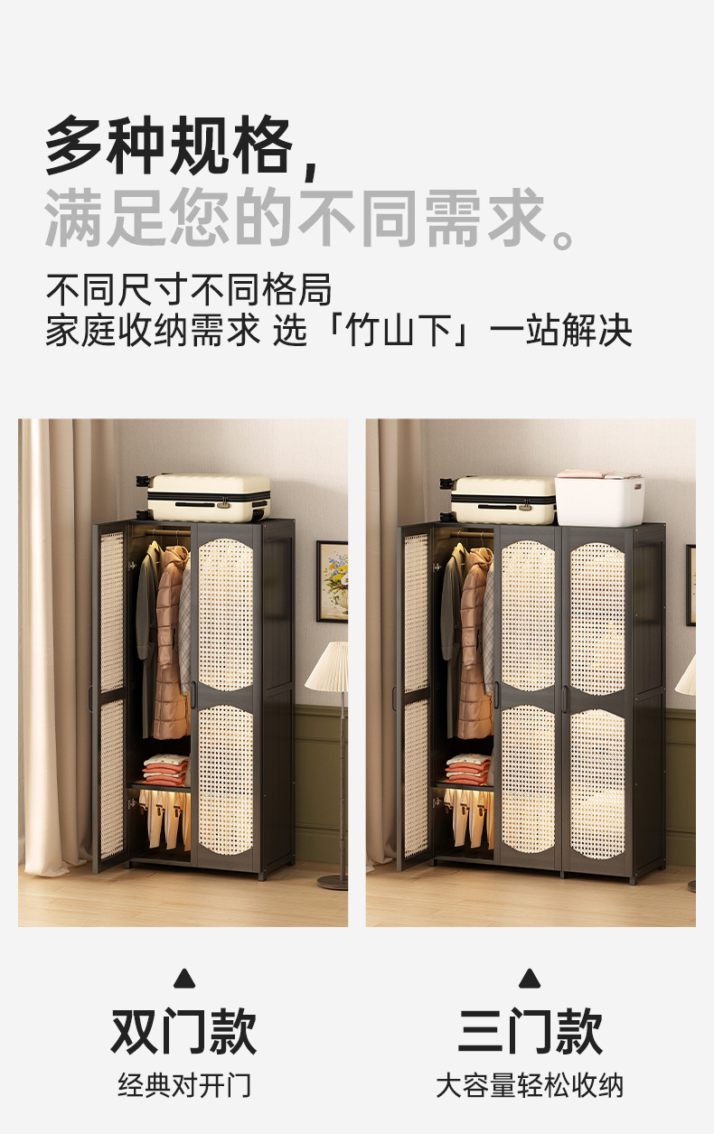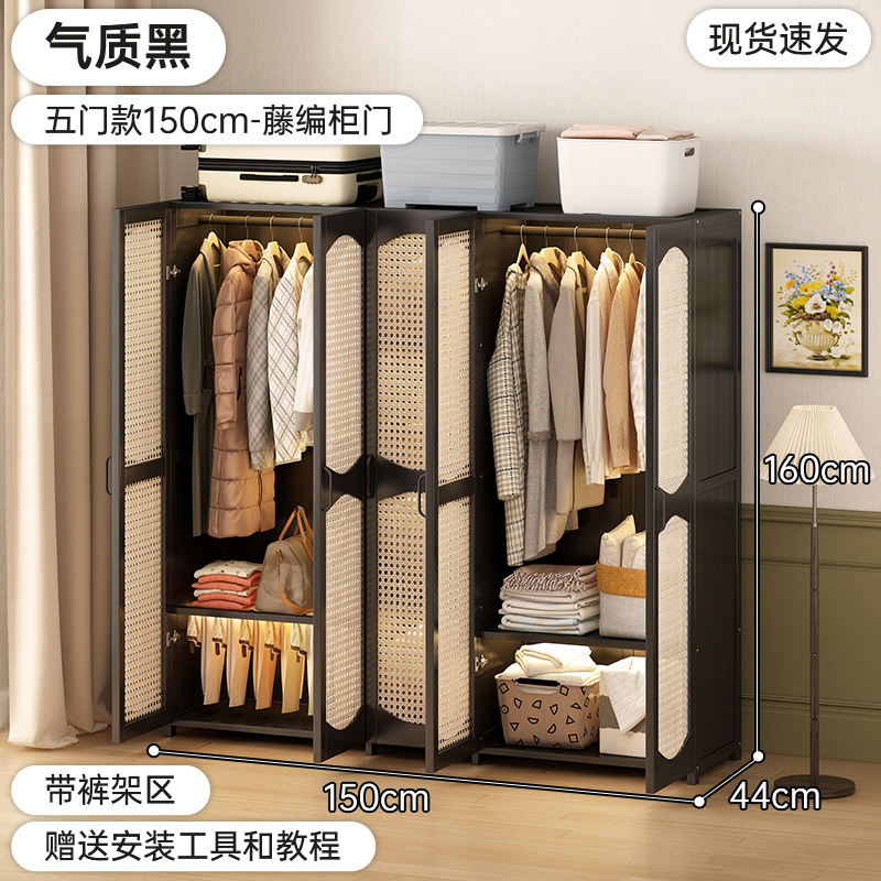 가정용 간단한 플라스틱 등나무 옷장 옷걸이 통기성 침실 조립 옷장 비 단단한 목재 임대 보관스토어 가기