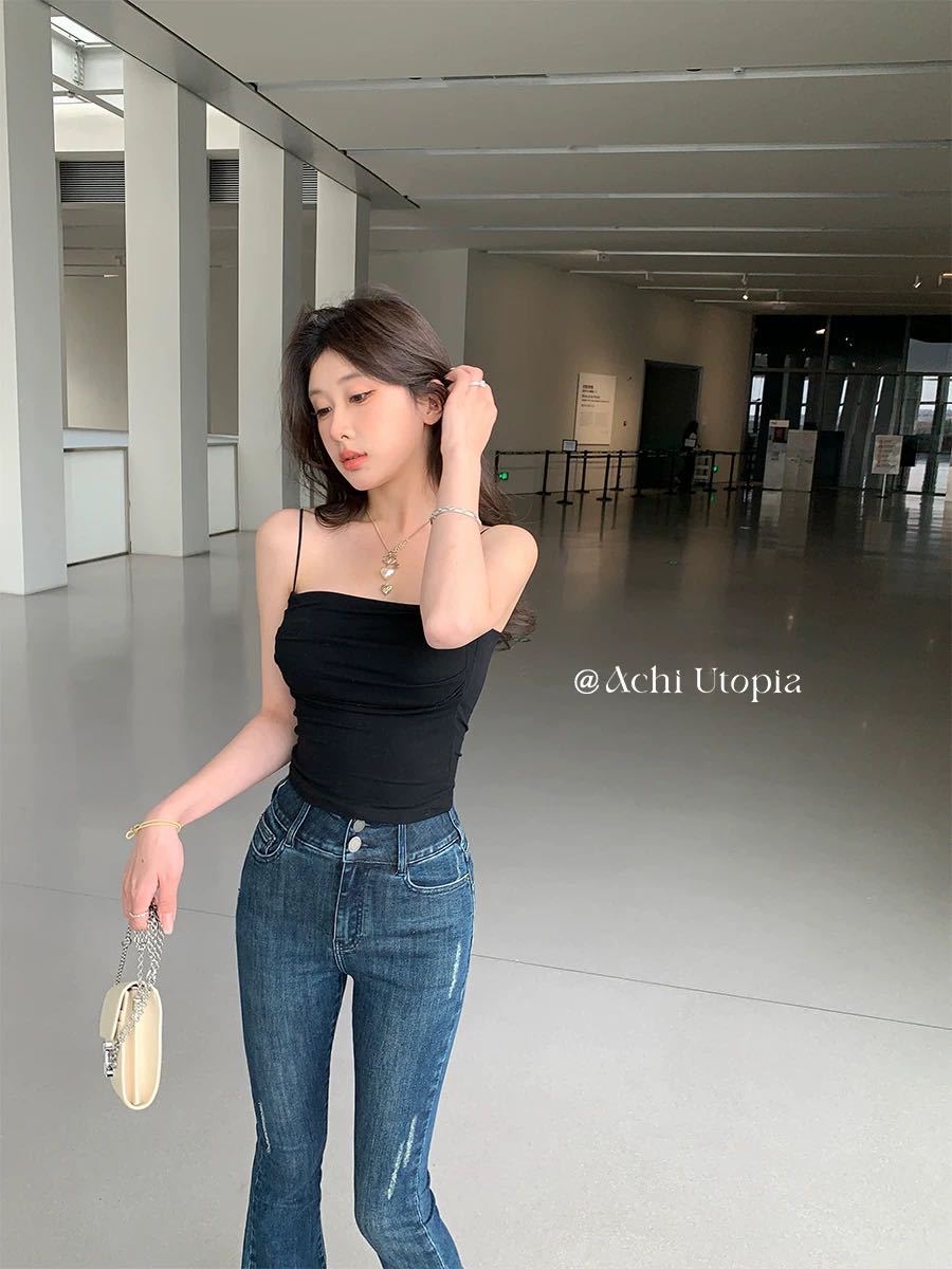 S889 # 스파이스 걸스, 여름에 얇은 어깨 끈 슬링 조끼 벨트 가슴 패드 가슴 슬리밍 원피스 스트랩없는 올매치스토어 가기