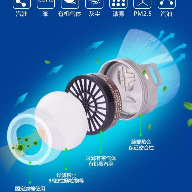 • 모든 용도에 맞는 파란색 방독면 + 김서림 방지 안경 + 필터 면 20개