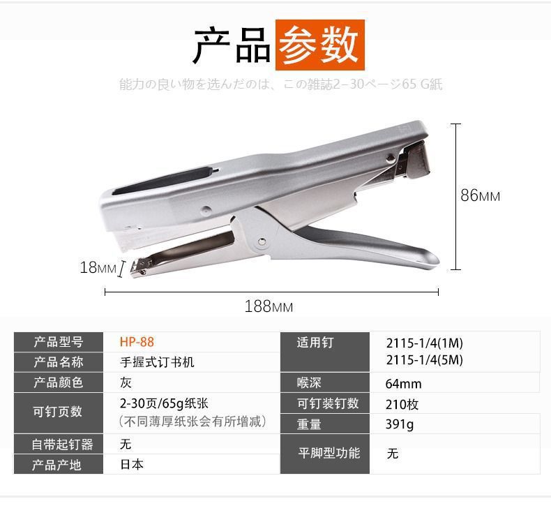 일본 수입 MAX HP-88 휴대용 스테이플러 사무실용 아치형 못으로 노동력을 절약하는 스테이플러스토어 가기