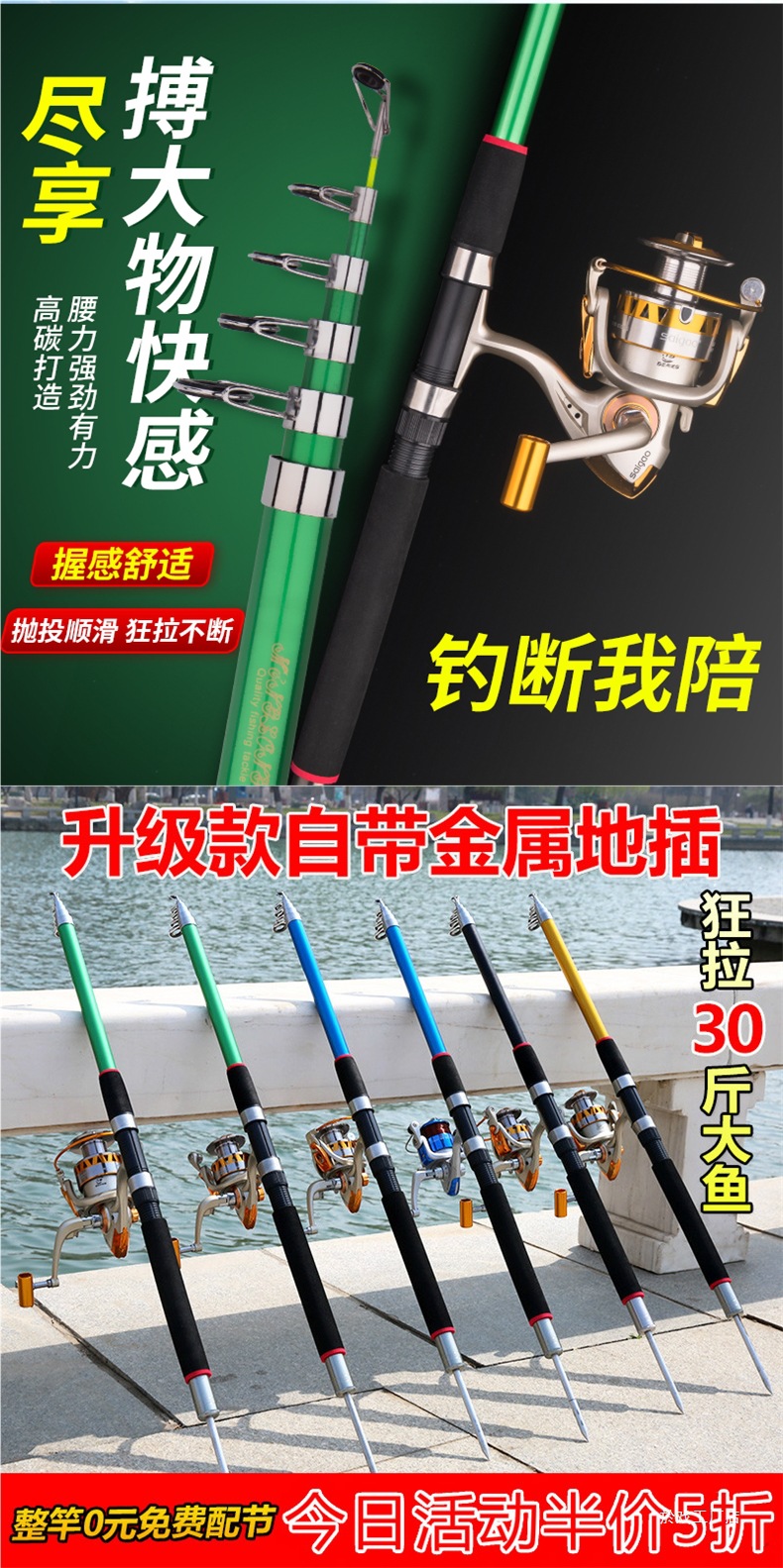 새로운 바다 극 던지기 막대 세트 조합 슈퍼 하드 낚시 큰 물체 장거리 투척 막대 금속 휠 낚시 장비 전체 세트스토어 가기