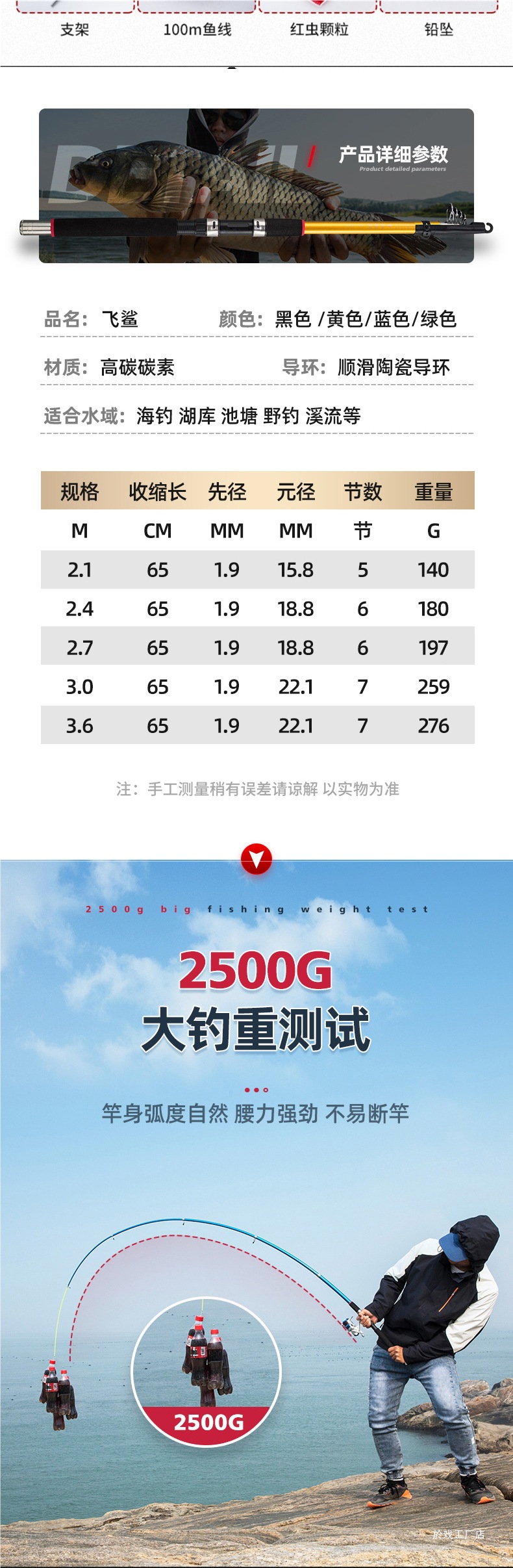 • 2.1m +3000형 금속 낚시 릴 + 선물 패키지