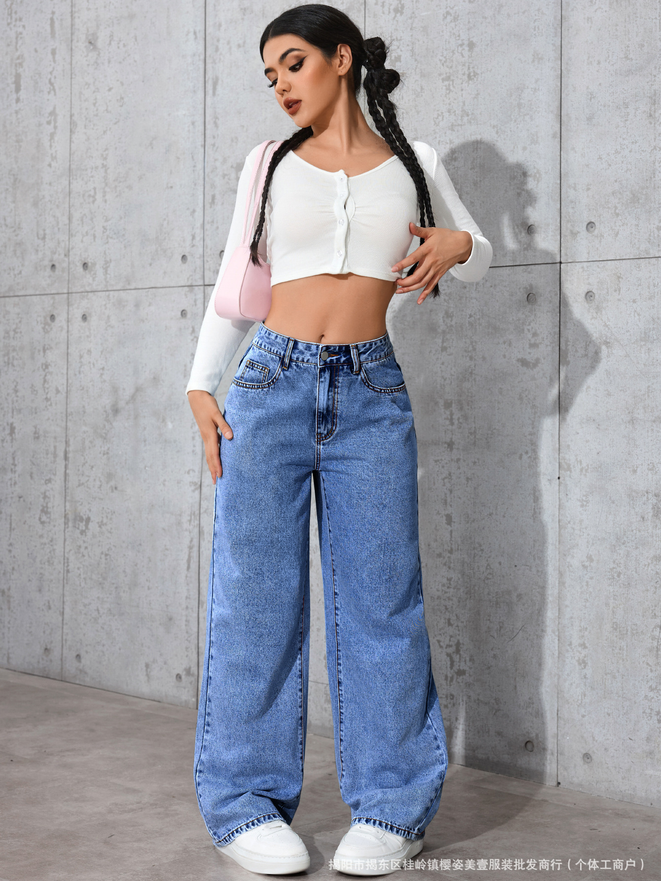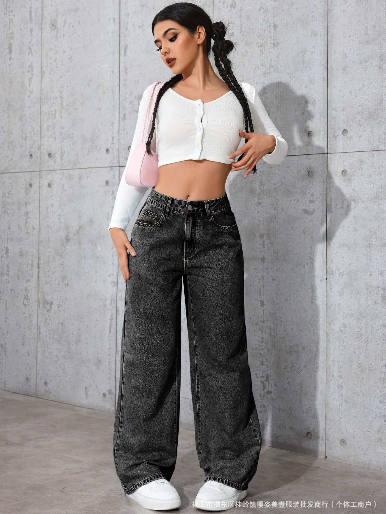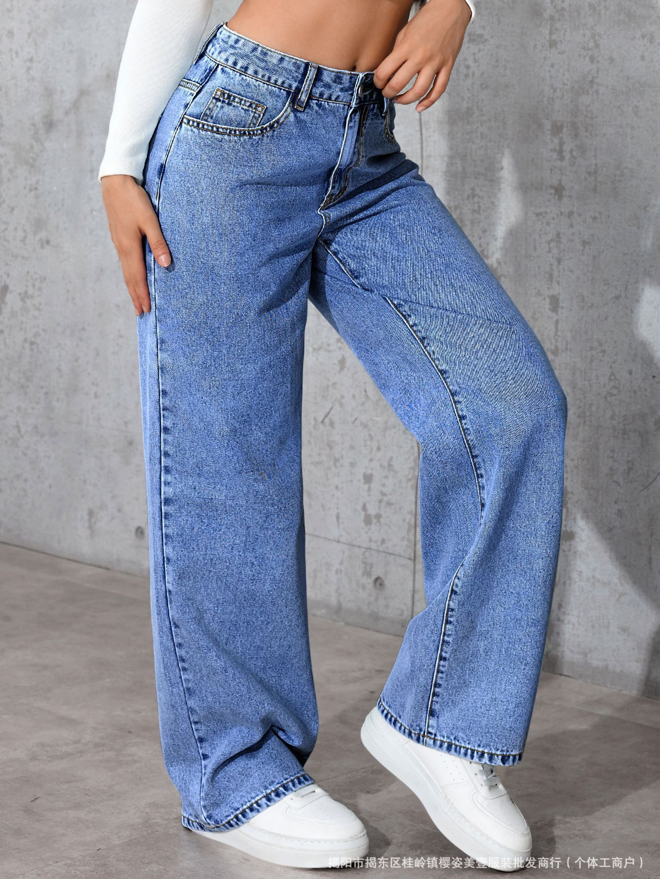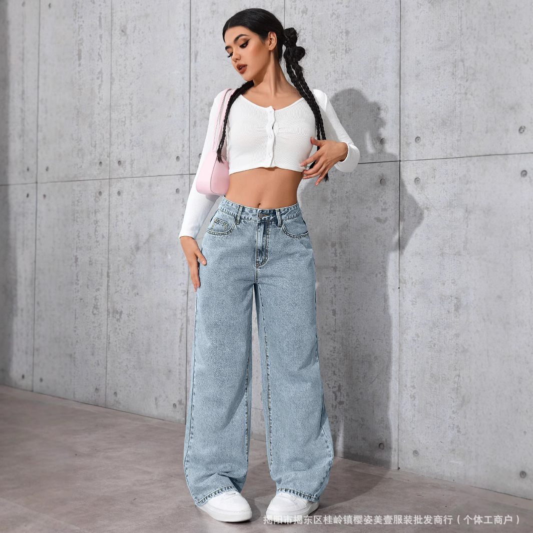 아마존 국경 간 뜨거운 판매 청바지 여성용 달콤한 핫 스타일 하이 허리 스트레이트 다리 바지 느슨한 캐주얼 바지 국경 간 폭발스토어 가기