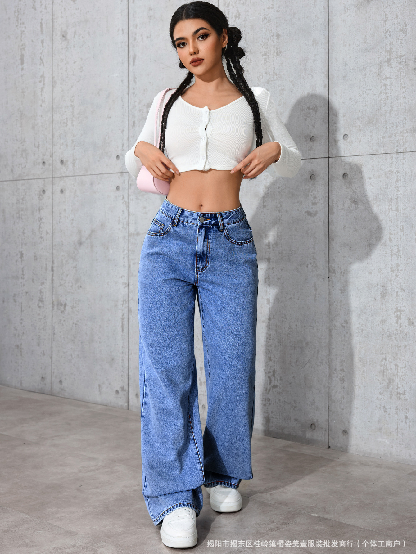 아마존 국경 간 뜨거운 판매 청바지 여성용 달콤한 핫 스타일 하이 허리 스트레이트 다리 바지 느슨한 캐주얼 바지 국경 간 폭발