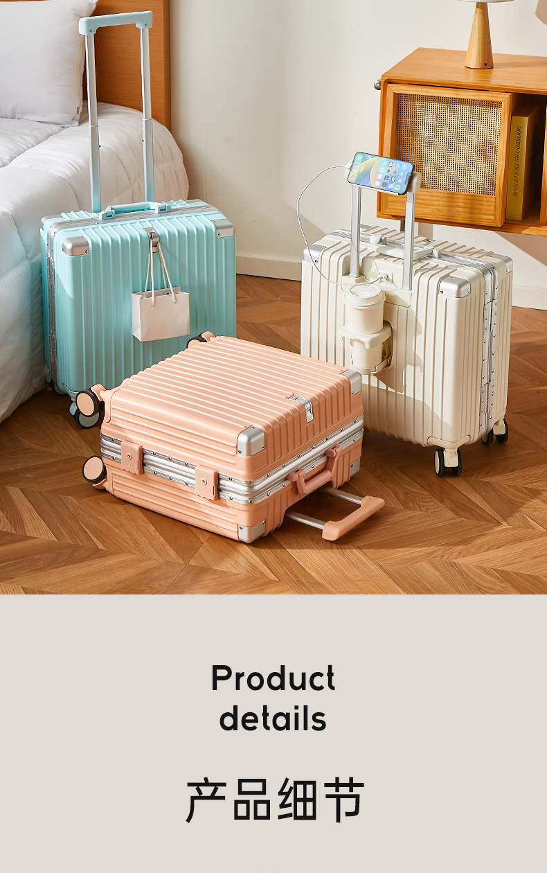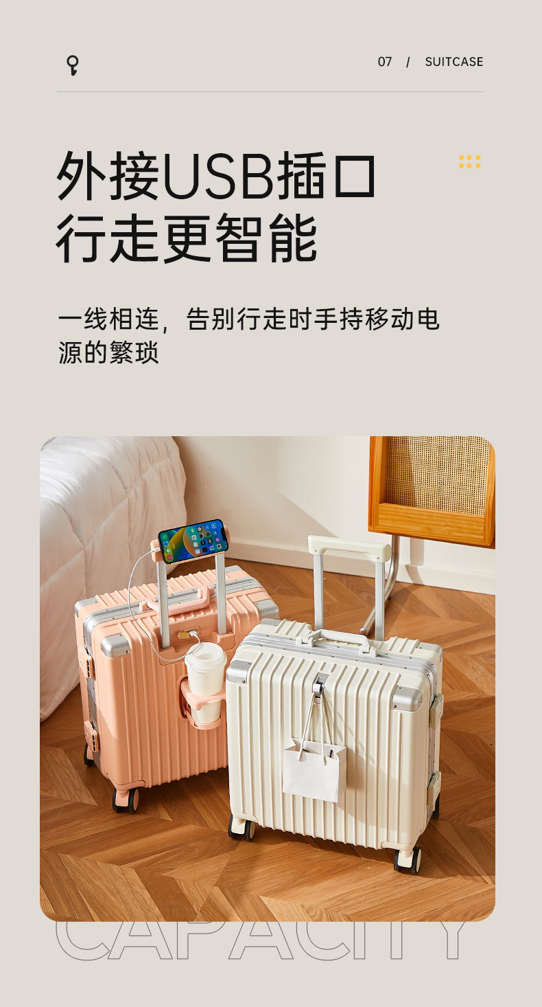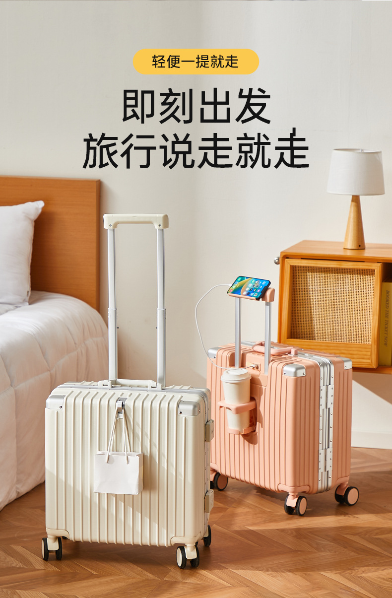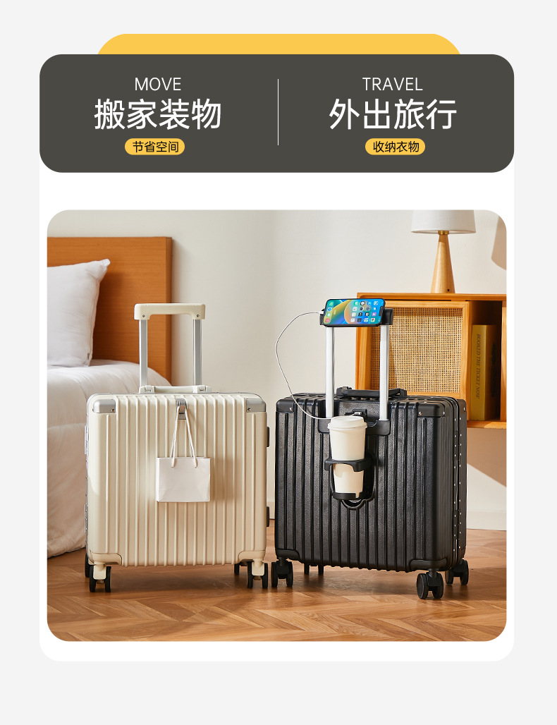 고급 20inch 수하물 여성용 소형 탑승 케이스 알루미늄 프레임 18inch 트롤리 케이스 자동 범용 휠 컵 홀더 여행 가방스토어 가기