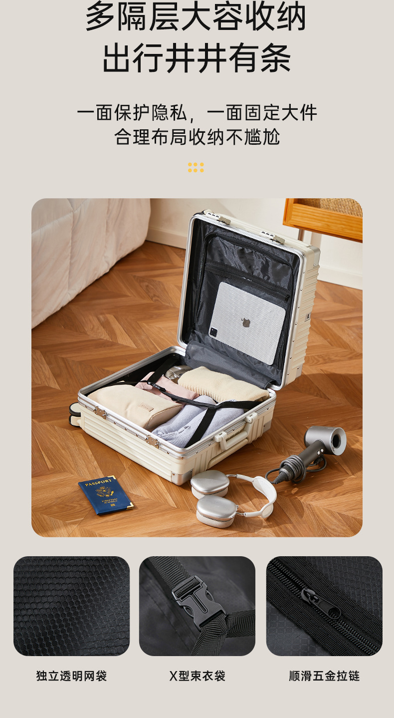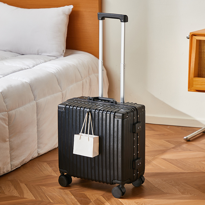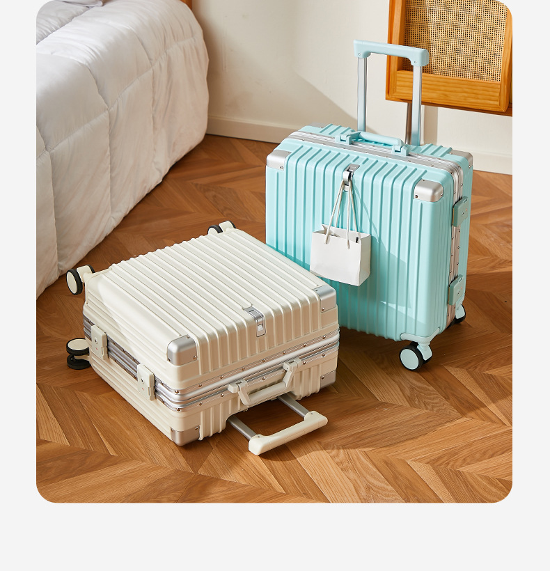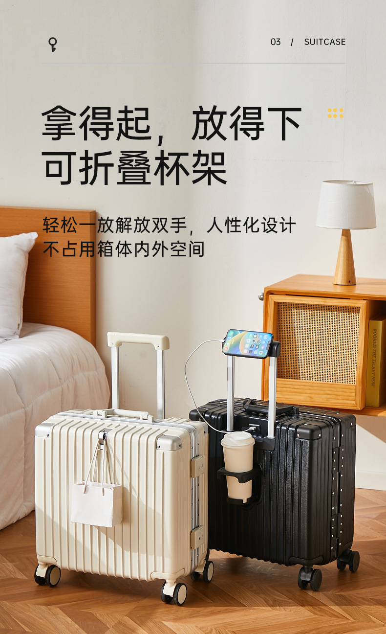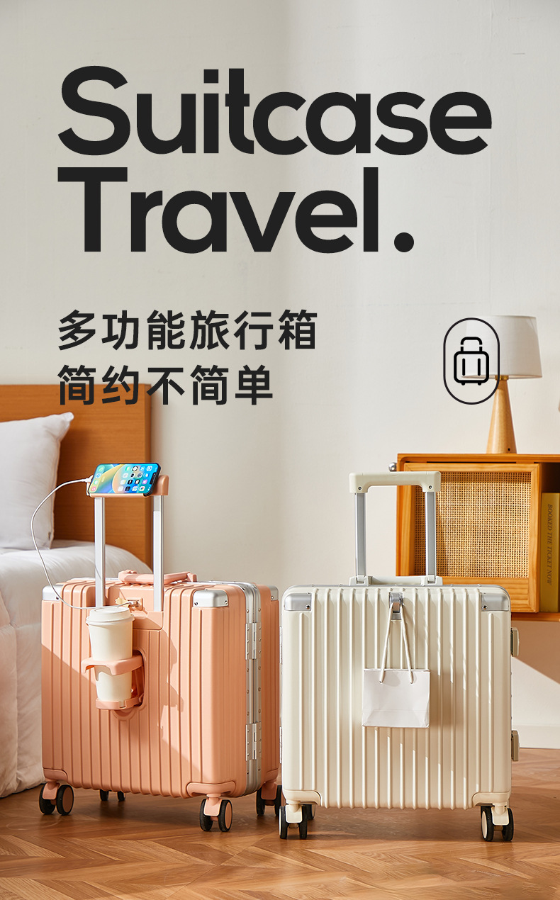 고급 20inch 수하물 여성용 소형 탑승 케이스 알루미늄 프레임 18inch 트롤리 케이스 자동 범용 휠 컵 홀더 여행 가방스토어 가기