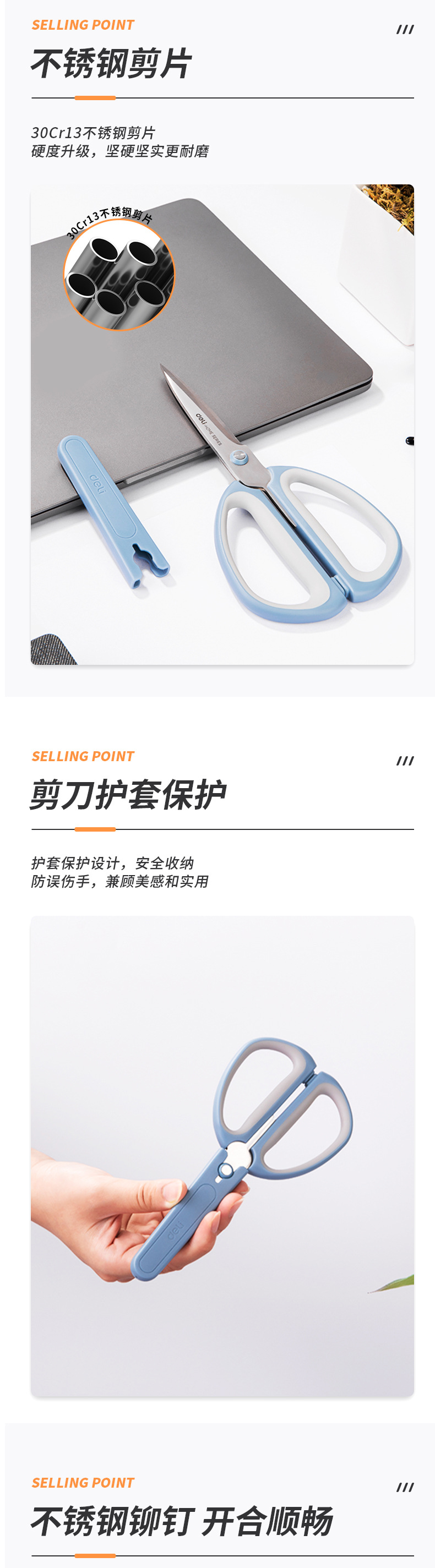 델리 TJ14 가정용 가위, 주방용 뼈 절단 가위, 스테인레스 스틸 다기능 재단사 특수 가위, 노동 절약형 올 스틸