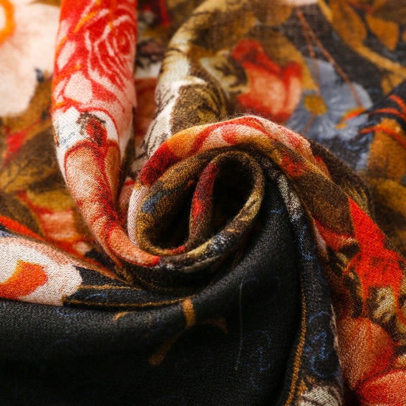 유럽과 미국에 국경 간 수출 검은 꽃면과 린넨 손 스카프 지저분한 실크 스카프 부드러운 따뜻한 자외선 차단제 여행 목도리