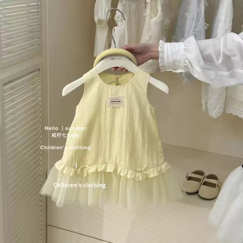 소녀 원피스 2025 여름 새로운 어린이 메쉬 스티칭 조끼 치마 얇은 아기 민소매 공주 원피스스토어 가기
