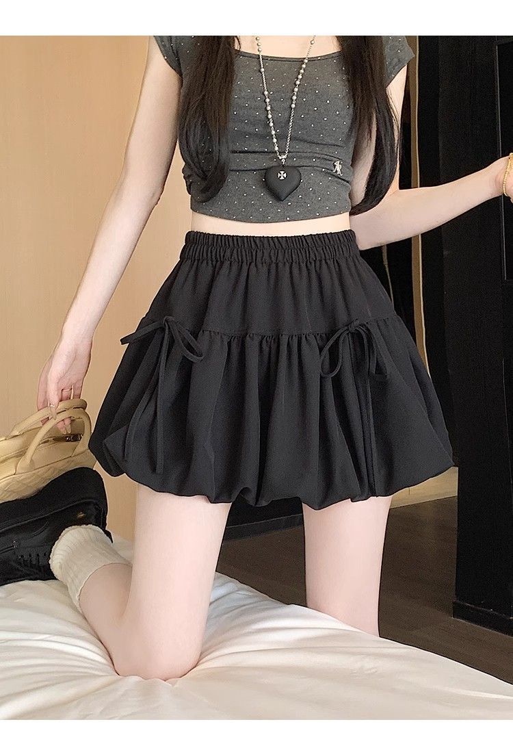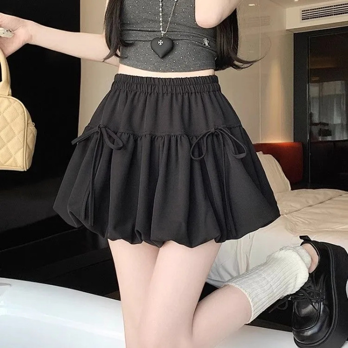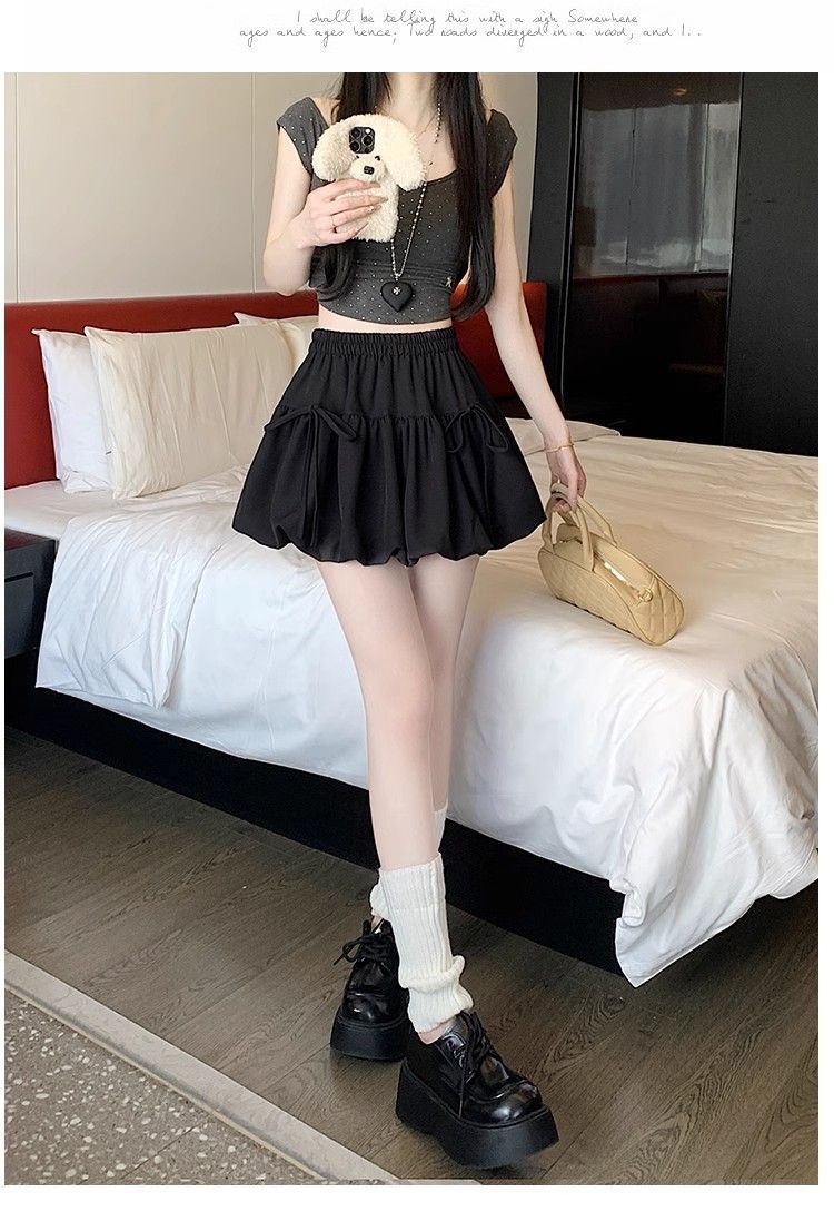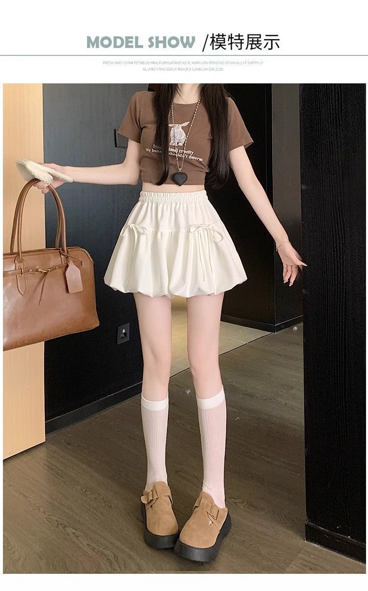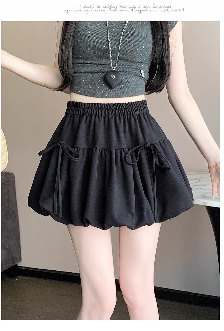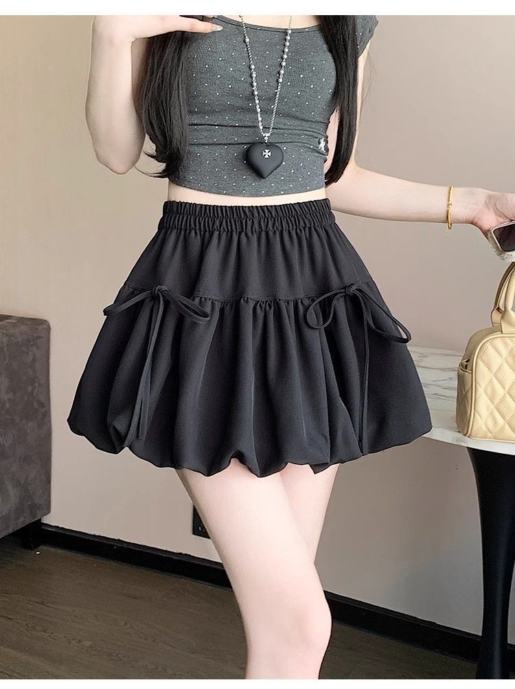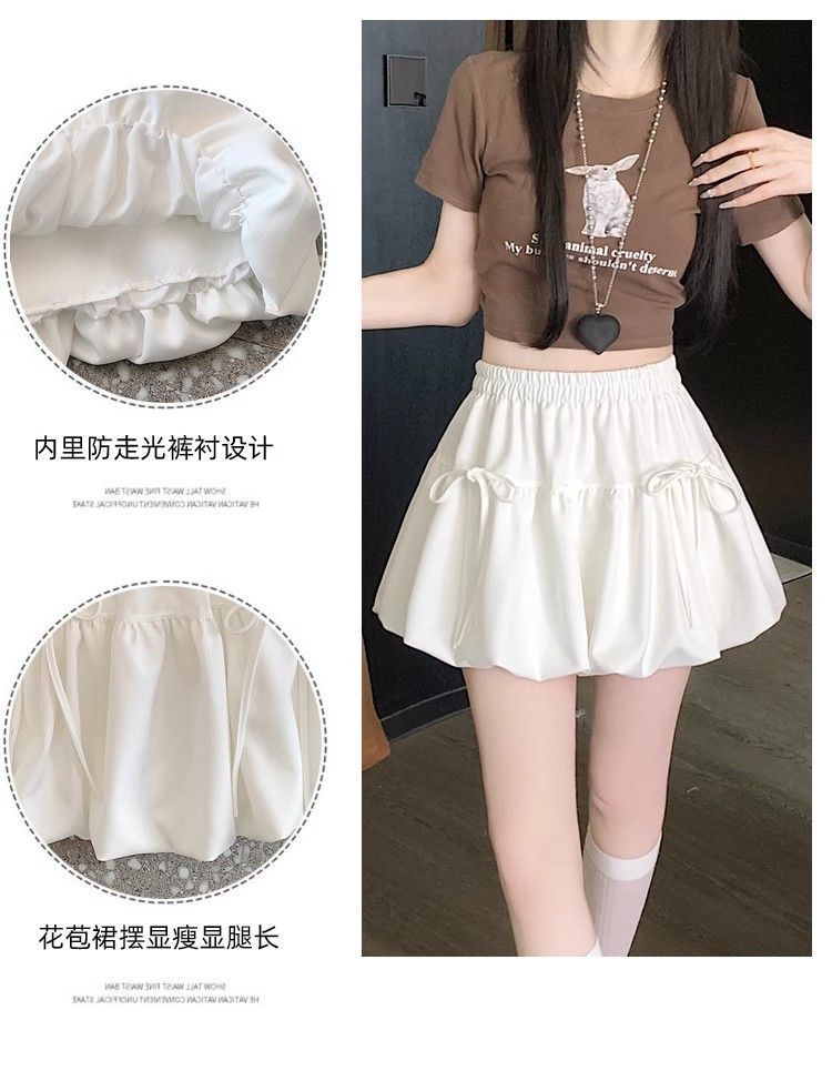 여성을위한 보우 버드 스커트 2025 봄 여름 새로운 스타일 하이 웨이스트 슬리밍 작은 a 라인 푹신한 짧은 스커트스토어 가기