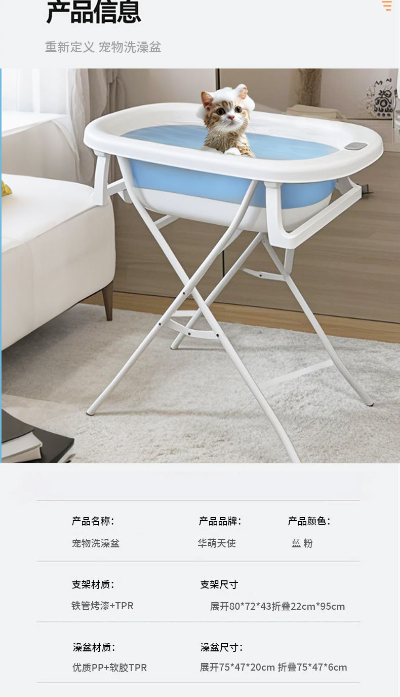 중소형 개와 고양이를 위한 애완동물 욕조, 범용, 구부리지 않는, 미끄럼 방지, 접이식, 온도 감지 애완동물 욕조스토어 가기