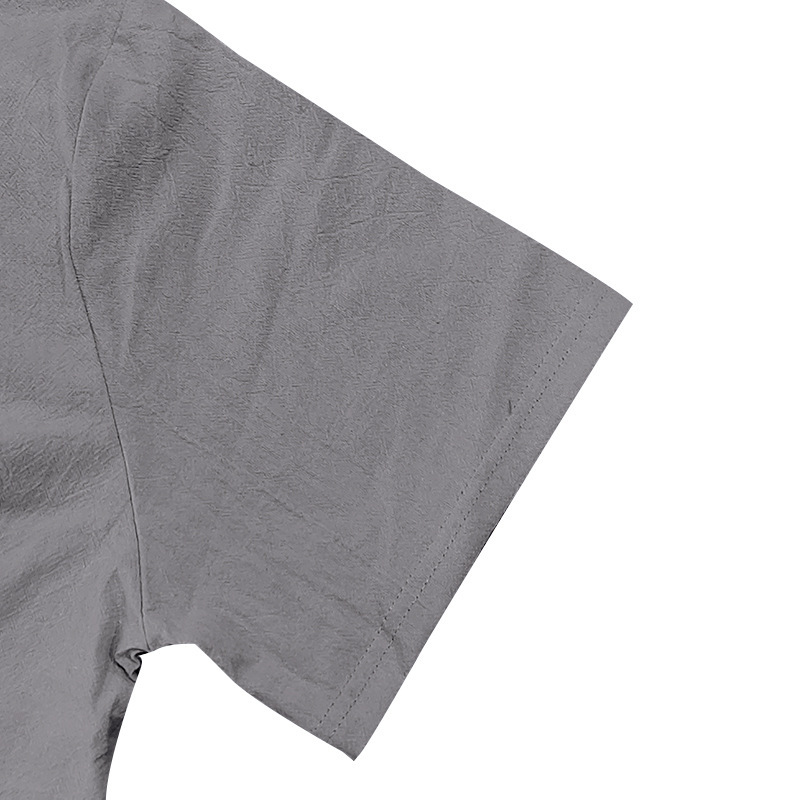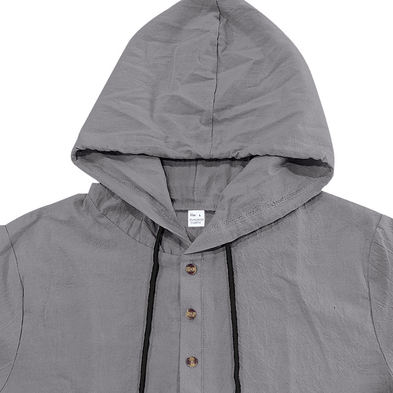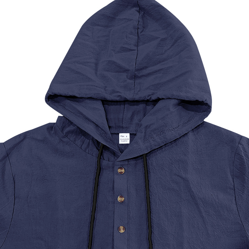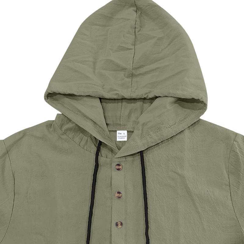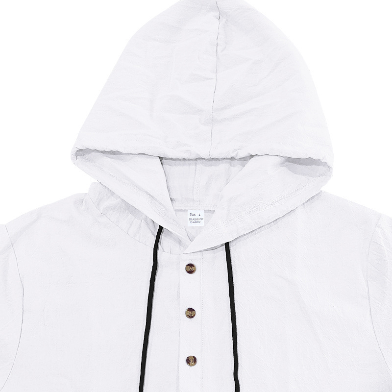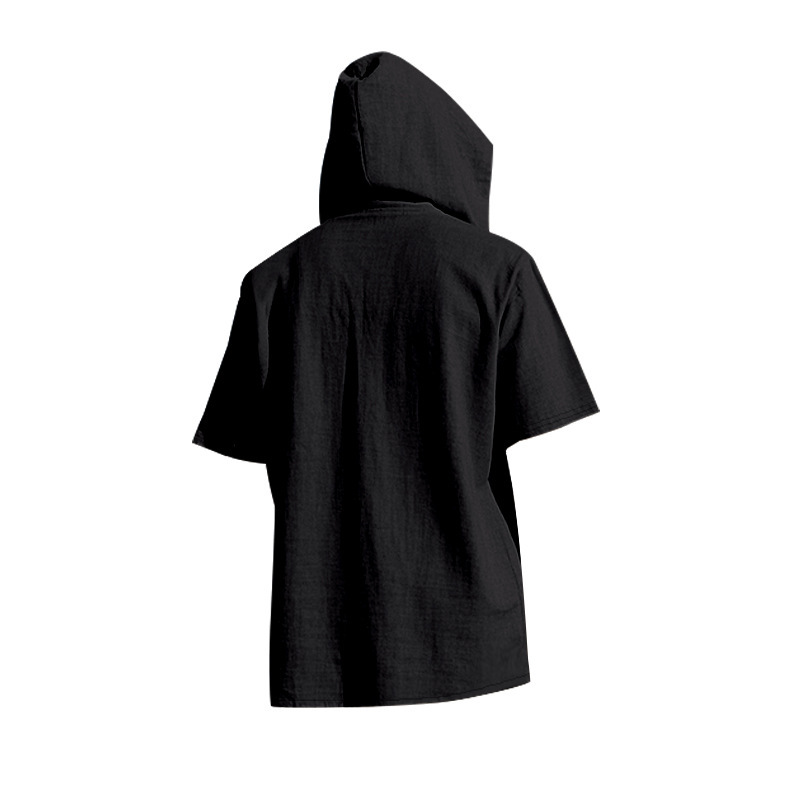 产品风格,美式夏季男士亚麻宽松休闲连帽亨利衫短袖