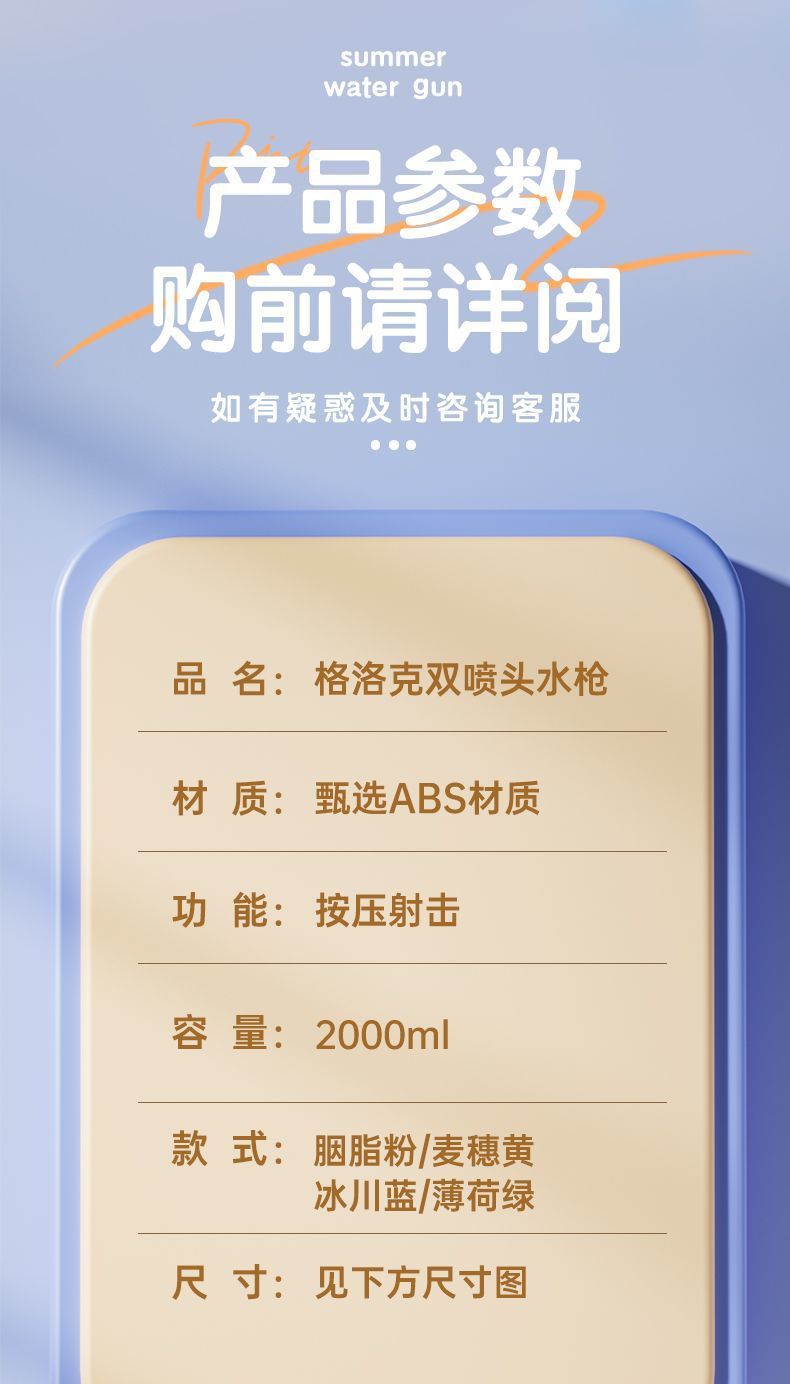 2025 새로운 어린이 물총 글록 물총 장난감 총 고압 물총 물 스프레이 장난감 물 싸움 권총스토어 가기