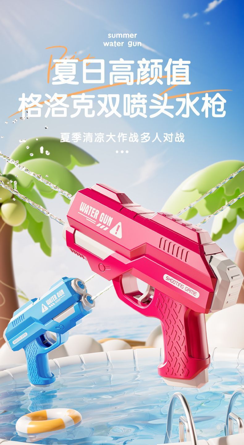 2025 새로운 어린이 물총 글록 물총 장난감 총 고압 물총 물 스프레이 장난감 물 싸움 권총