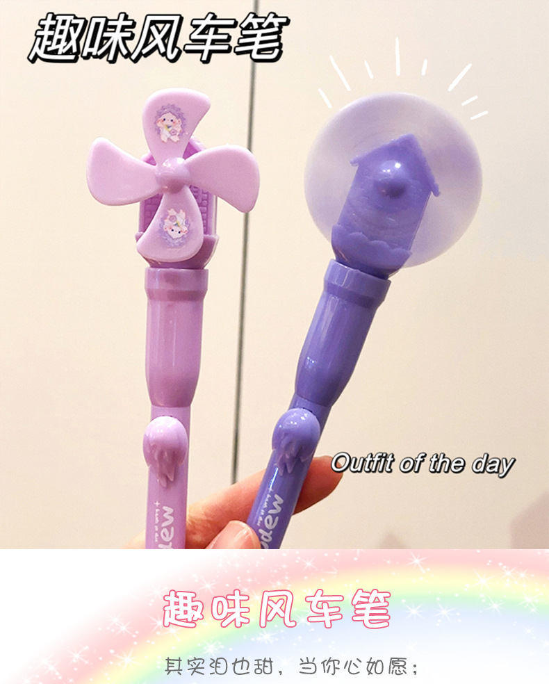 趣味风车笔创意黑色笔芯圆珠笔小学生专用中性笔卡通转转笔解压笔