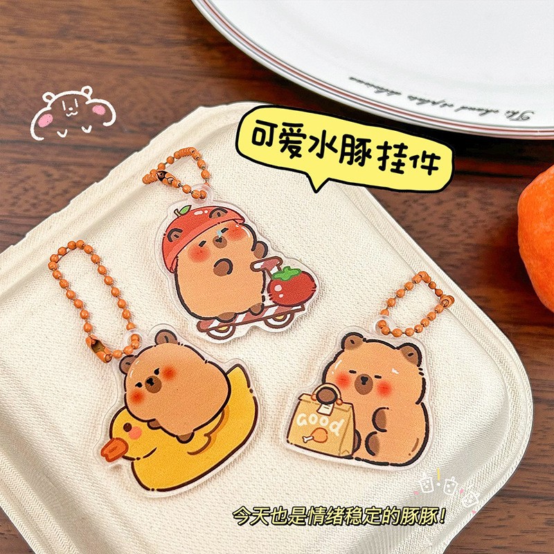 귀여운 Kapibara 키 체인 만화 복어 키 체인 소녀 하트 Capybara 장식 펜던트 아크릴 액세서리스토어 가기