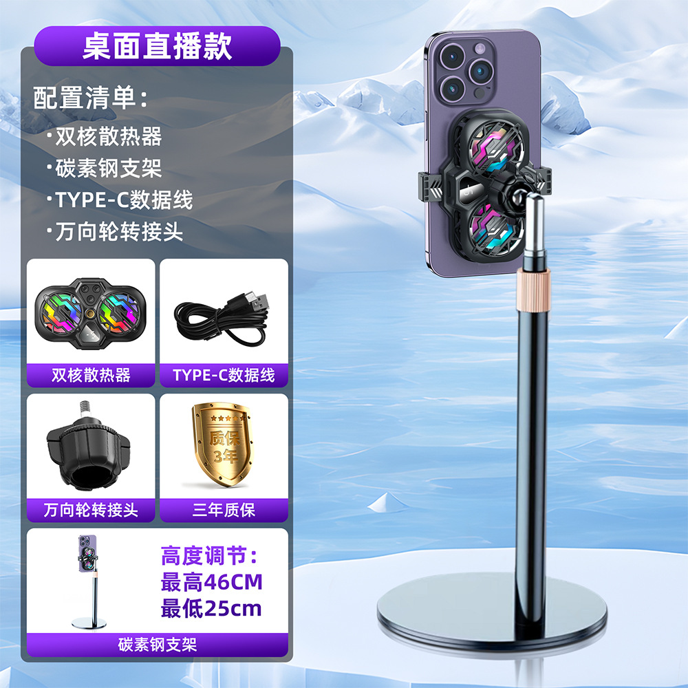 • [데스크탑 라이브 방송 쇼트 모델] 듀얼 코어 냉각★무음 + 짧은 스탠드 30CM 텔레스코픽
