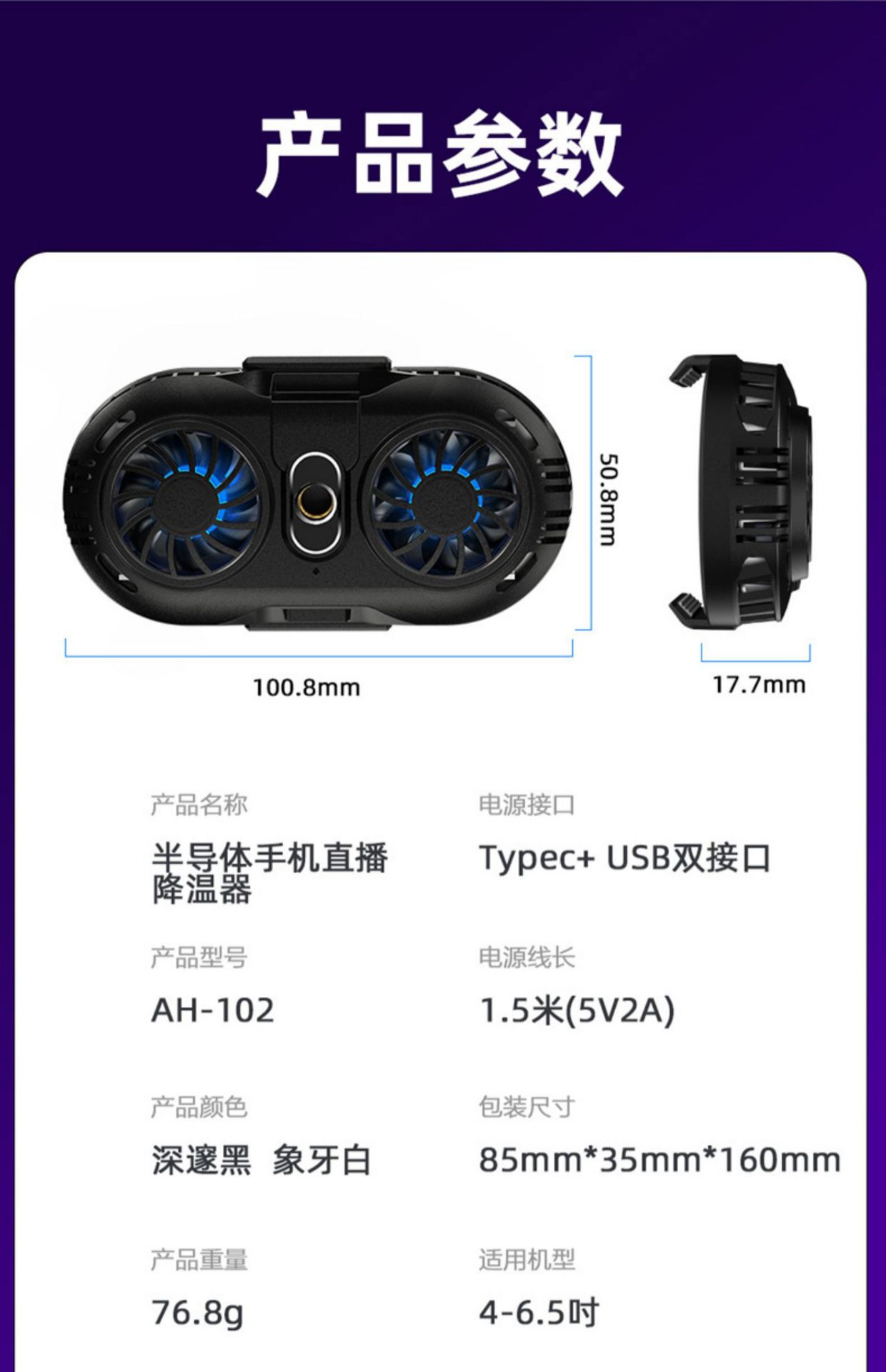 휴대 전화 라디에이터 냉각 반도체 냉동 음소거 게임 수냉식 백 클립 라이브 브래킷 팬 충전