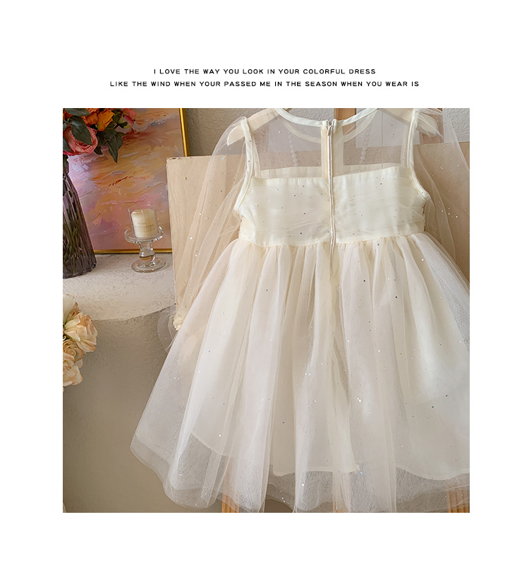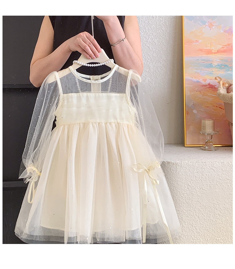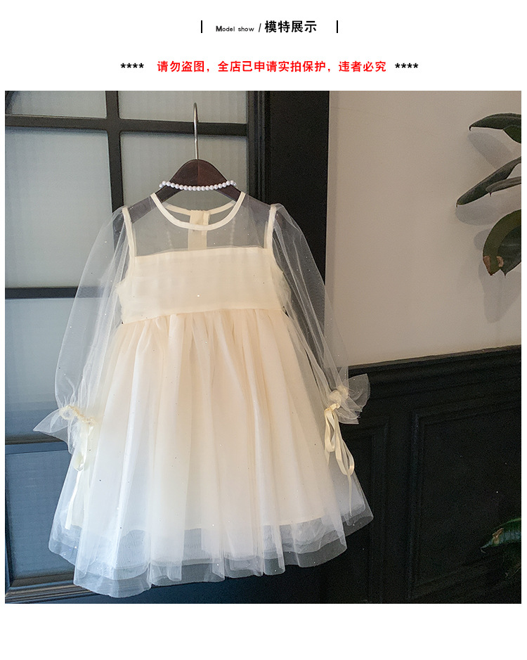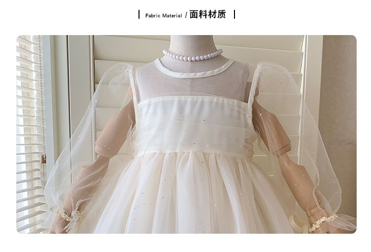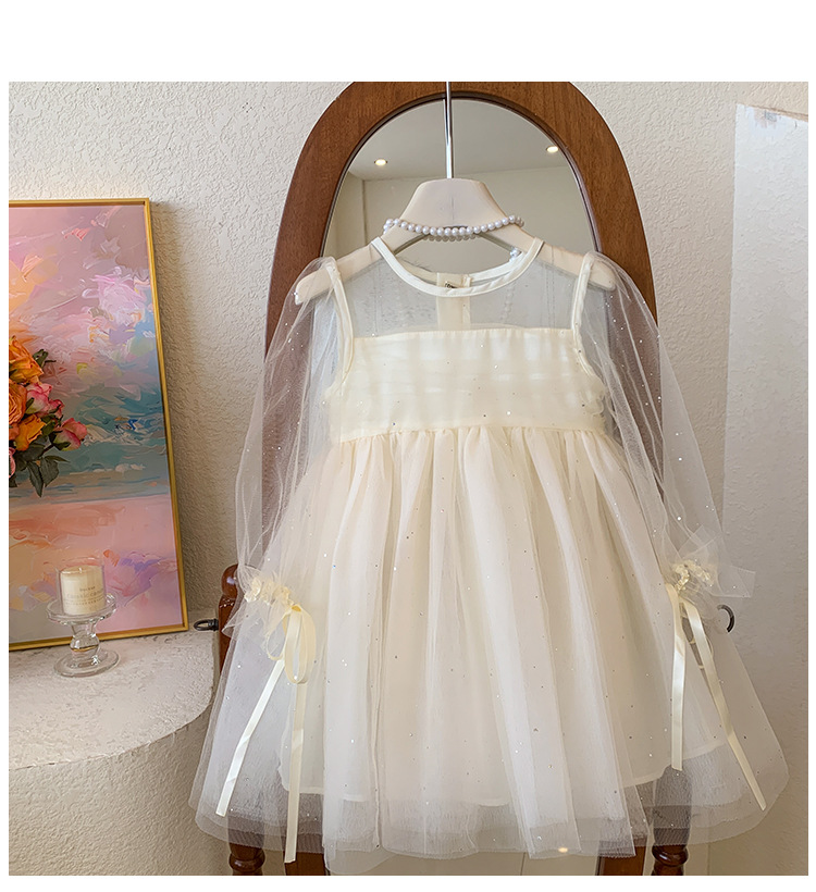 소녀 2025 봄과 여름 긴 소매 퍼프 소매 원피스 반짝이는 베일 원피스 아기 소녀 공주 원피스 생일 원피스스토어 가기